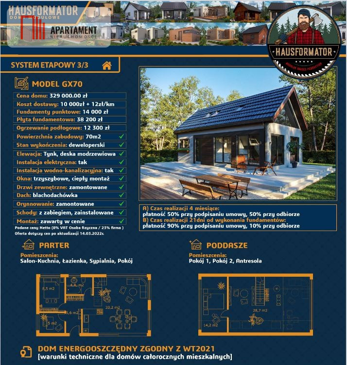 Na oferowanych działkach można postawić dom modułowy na zgłoszenie w ekspresowym tempie ok 1 miesiąca.