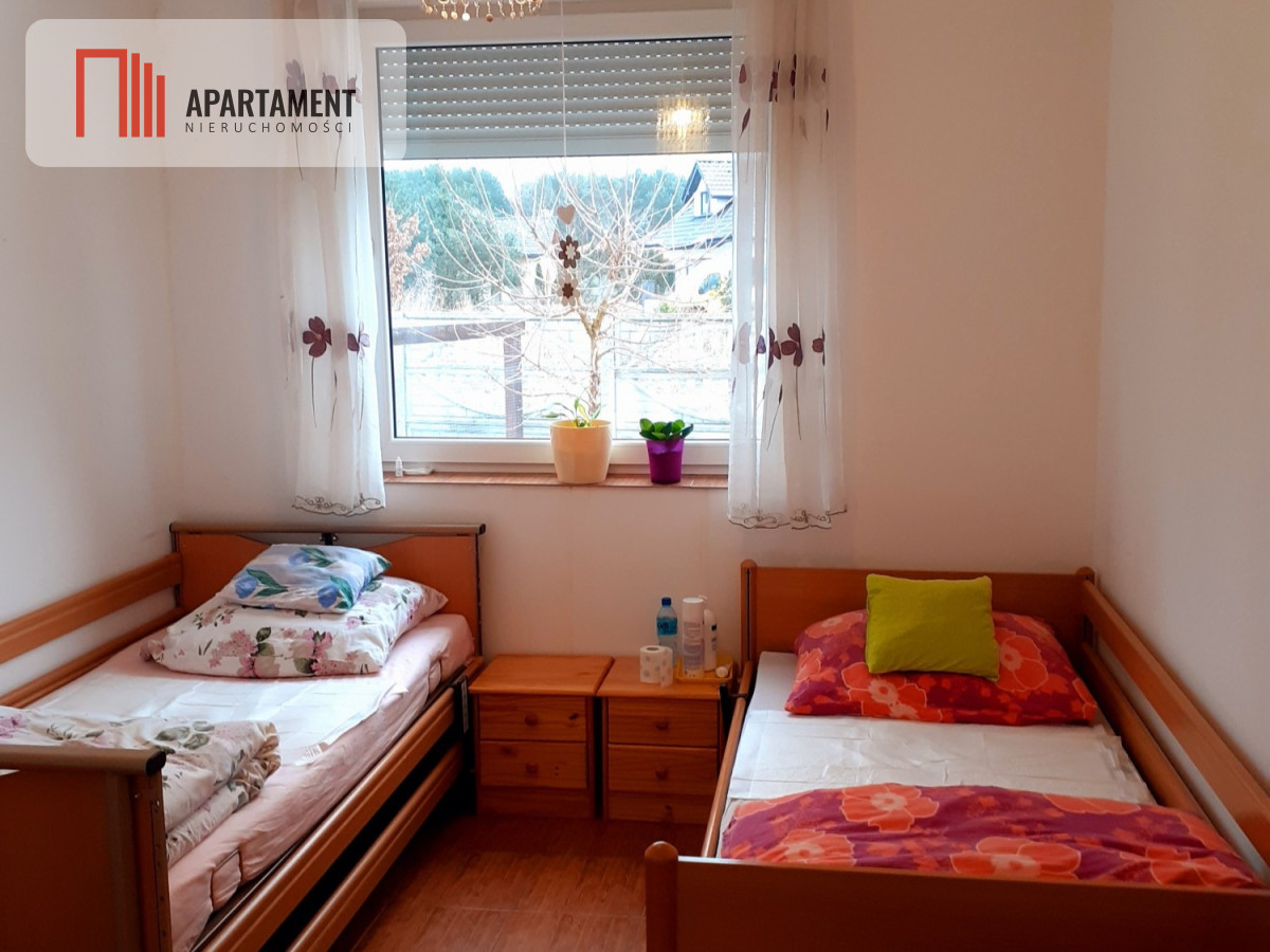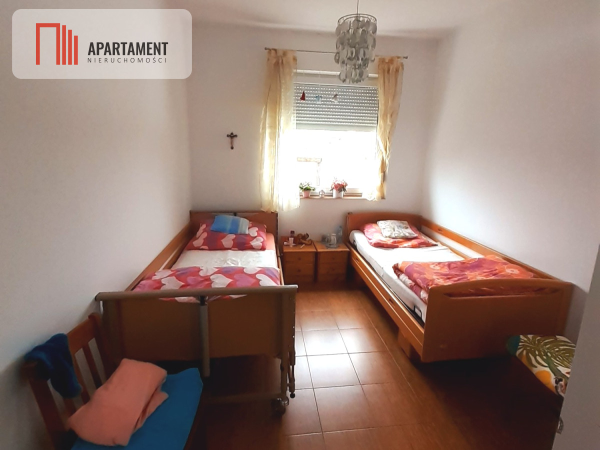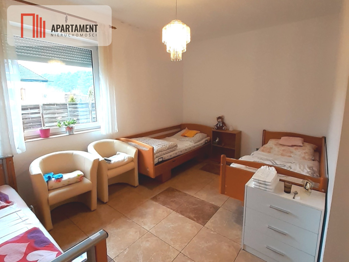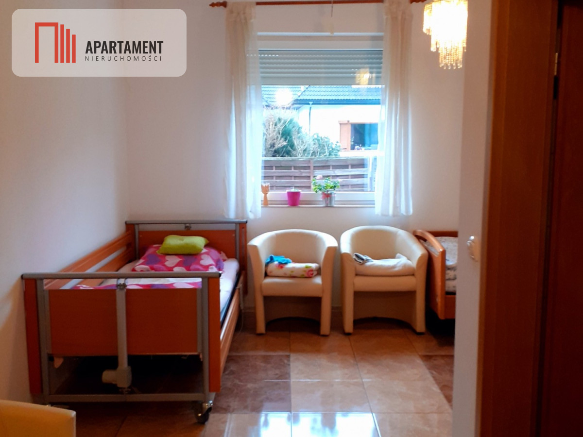 Oferta dostępna w Biurze Nieruchomości Apartament. Pośrednik Anna Zakrzewska tel.798 857 340. Na sprzedaż Całodobowy Dom Opieki, który prężnie funkcjonuje od 7 lat. Właściciele przechodzą na emeryturę. Budynek KAT.11, co oznacza, że można prowadzić w nim działalność związaną z opieką zdrowotną, może być szpital, klinika, przychodnia, dom opieki. W tej chwili jest pozwolenie na 12 podopiecznych seniorów. Budynek ma pozwolenie na podciągnięcie pietra i rozbudowę. Lokal składa się z: 8 pokoi od 12,78m2 do 29,38m2 7 łazienek średnia wielkość 5m2 pomieszczenie socjalne 18,86m2 gabinet lekarski 7,2m2 rehabilitacja 7,2m2 jadalnia 17,53m2 kuchnia 15,16m2 inne pomieszczenia socjalne i usługowe. Niskie koszty utrzymania ze względu na ogrzewanie bo jest nowa pompa ciepła. Energia za dwa miesiące to 780 zł. Dom: Dom w urokliwym miejscu, graniczący ze ścianą lasu. Wybudowany i wykończony z materiałów wysokiej jakości. Bardzo oszczędny-ekonomiczny w utrzymaniu dzięki pompie ciepła. Funkcjonalny układ na parterze duży salon z pięknym kominkiem, kuchnia ze spiżarnią, łazienka z prysznicem. 1. Wiatrołap: 3,23 m² 2. Hall: 7,71 m² 3. Pokój: 10,06 m² 4. Kuchnia z jadalnią: 16,32 m² 5. Spiżarnia: 2,03 m² 6. Salon: 26,69 m² 7. WC: 1,72 m² 8. Pom.gosp.: 4,73 m² 9. Garaż: 36,80 m² Na piętrze cztery sypialni, garderoba, pokój kąpielowy z prysznicem, wanną. 1. Hall: 6,95 m² 2. Pokój: 17,45 m² 3. Pokój: 12,45 m² 4. Pokój: 12,45 m² 5. Łazienka: 10,45 m² 6. Garderoba: 2,90 m² 7. Łazienka: 3,30 m² 8. Strych: 23,90 m²