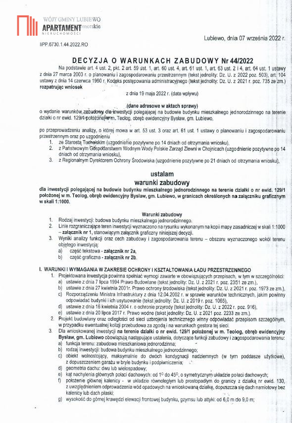 Urocza posiadłość w sercu natury 100 m do linii brzegowej jeziora . Idealne miejsce na reset szarej rzeczywistości dzisiejszego świata. Sielankowy klimat wszechobecna natura na wyciągnięcie ręki. TO JEST MIEJSCE DLA CIEBIE. Duża działka może posłużyć komercjalizacji obiektu w stylu agroturystycznym i nie tylko. Media - prąd i woda w drodze przy działce. Na prezentowana działkę zostały wydane warunki zabudowy o następujących postanowieniach - budynek wolnostojący, dach dwu lub wielospadowy od 1-do 45 stopni, maksymalnie dwie kondygnacje, wysokość w kalenicy do 9m, powierzchnia zabudowy 100 - 200 m i szerokości elewacji frontowej 10 do 20 m. W galerii treść najważniejszych postanowień wydanych warunków zabudowy. Na oferowanej działce możesz postawić domy modułowe na zgłoszenie zaprezentowane w galerii w ekspresowym tempie. Niniejszy opis nie oddaje w pełni walorów i klimatu prezentowanego miejsca, dla tego ....ZAPRASZAM!! Maciej Brzeski 798339773
