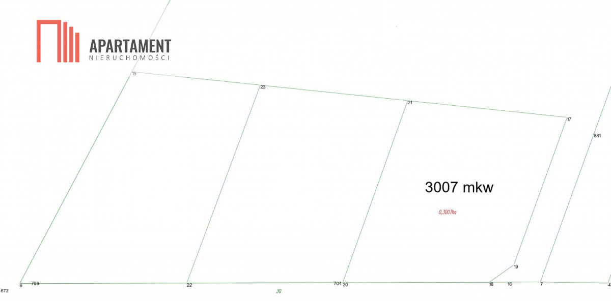 Powierzchnia ok. 3007 m2 i regularnym kształcie lub inne. Klasa gruntu V. Prąd i woda w granicy działki.