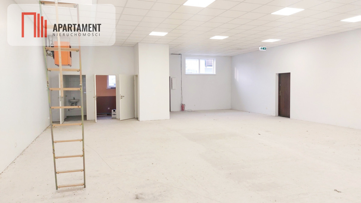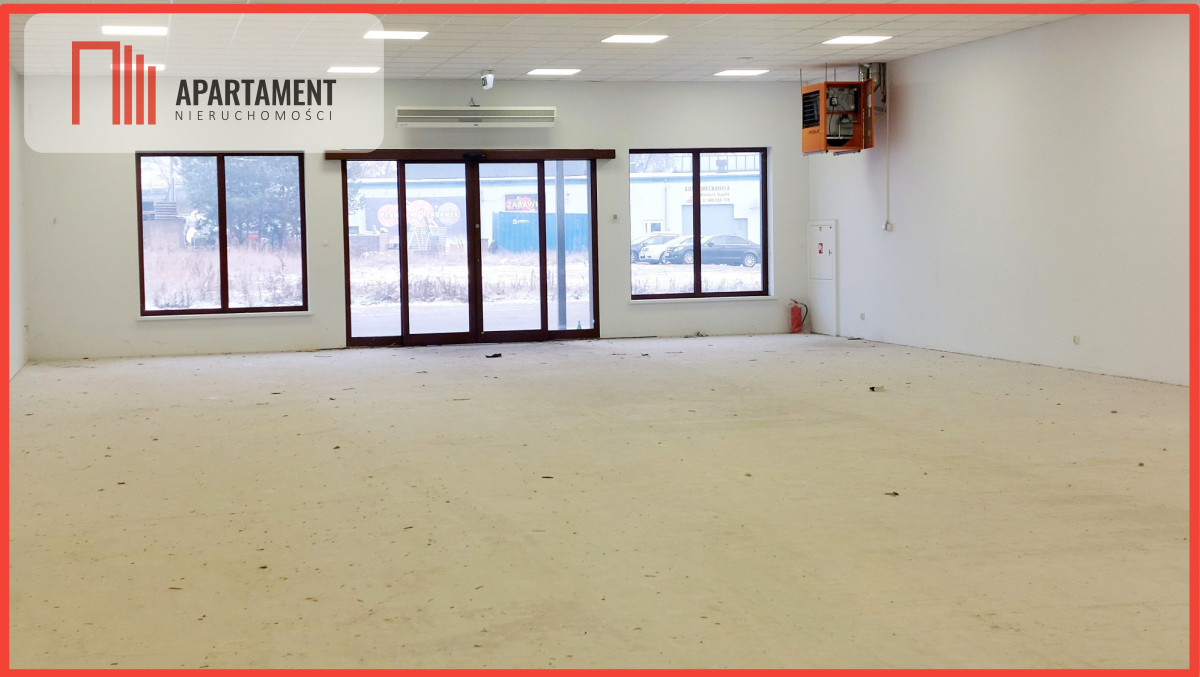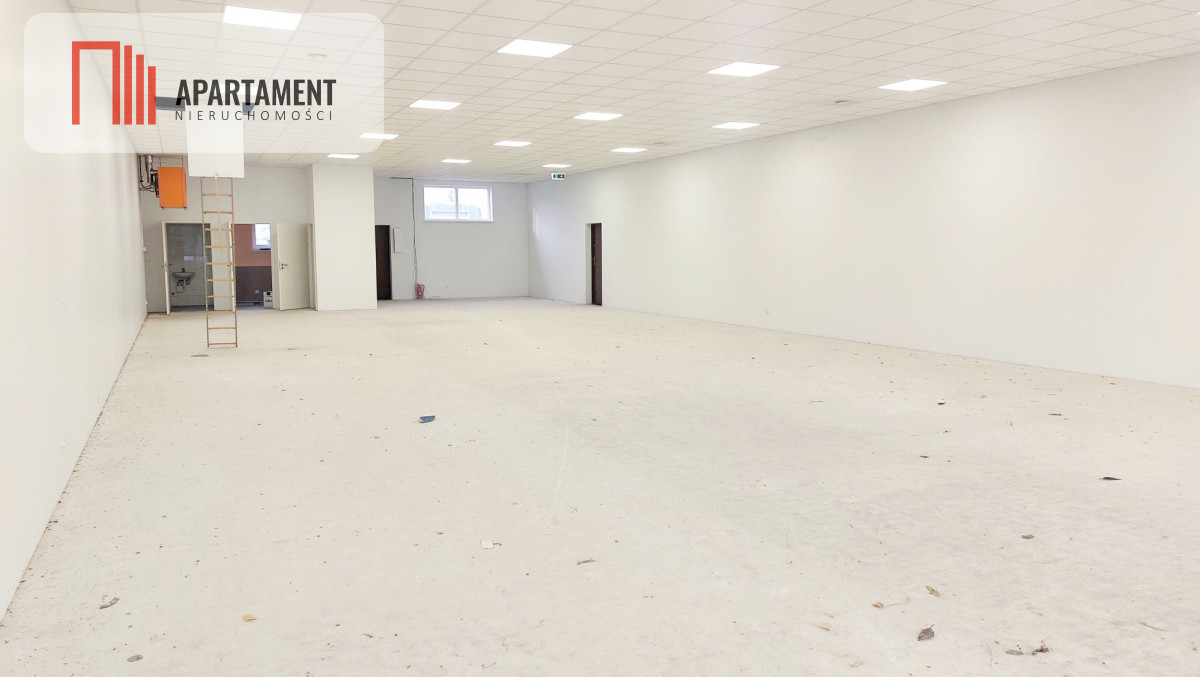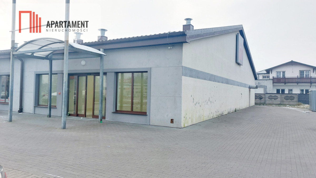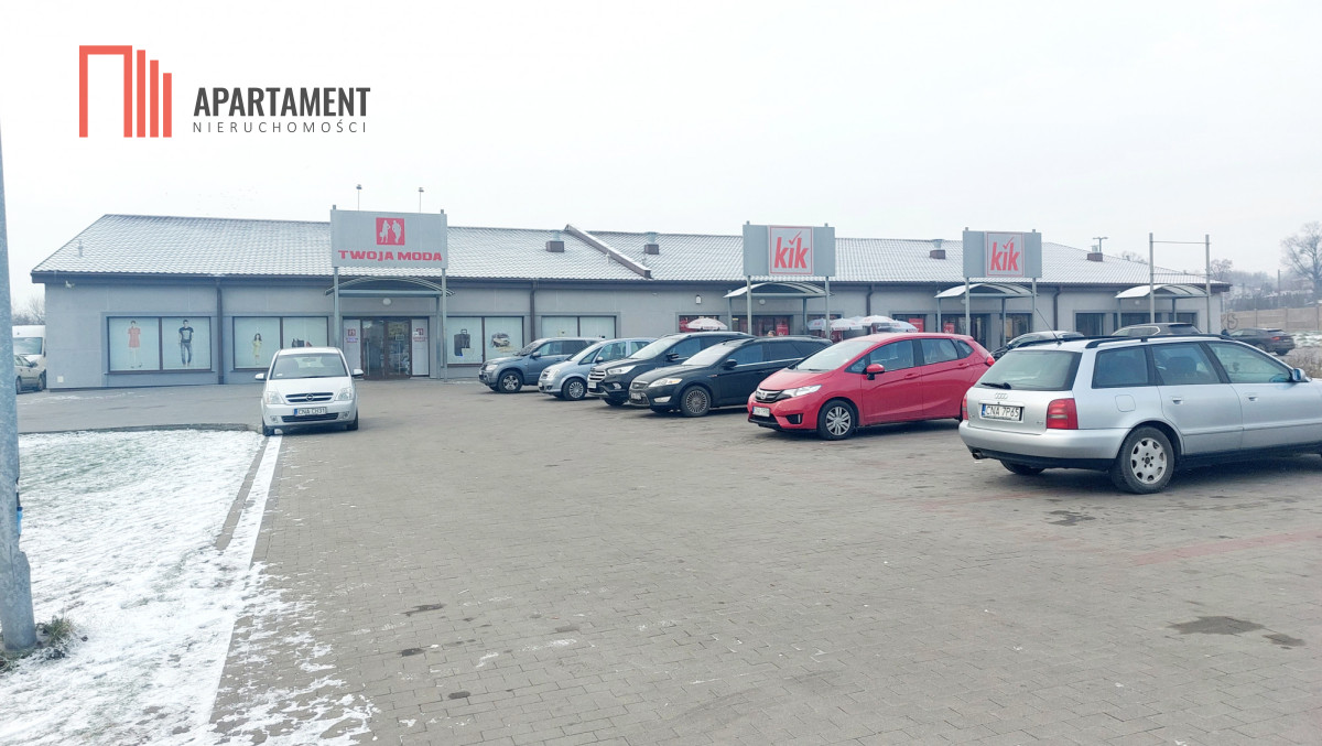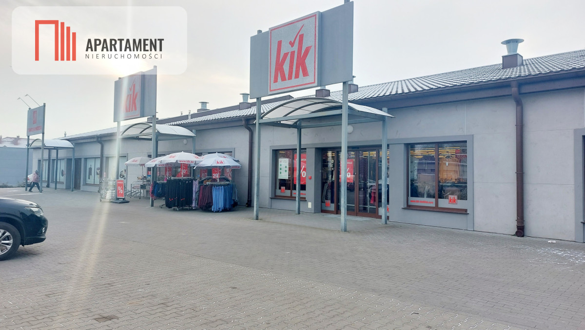 Budynek z 2016 roku łącznie składa się z 3 lokali handlowo - usługowych. Sprzedaży podlegają 2 lokale. Lokal o powierzchni 527mkw. na chwilę obecną wynajmowany jest przez KiK, przystosowany pod standardy najemcy. Lokal o powierzchni 259mkw. nie był wynajmowany, podłogi przygotowane pod płytki, ściany gładź, sufity podwieszane. W lokalu zaplecze socjalne w postaci kuchni i toalety. Nieruchomość ogrzewana nagrzewnicami gazowymi, gaz z butli wkopanej w ziemi. Przyłącze prądowe, wodne i kanalizacyjne. Powierzchnia działki 3629mkw. - teren utwardzony kostką brukową.