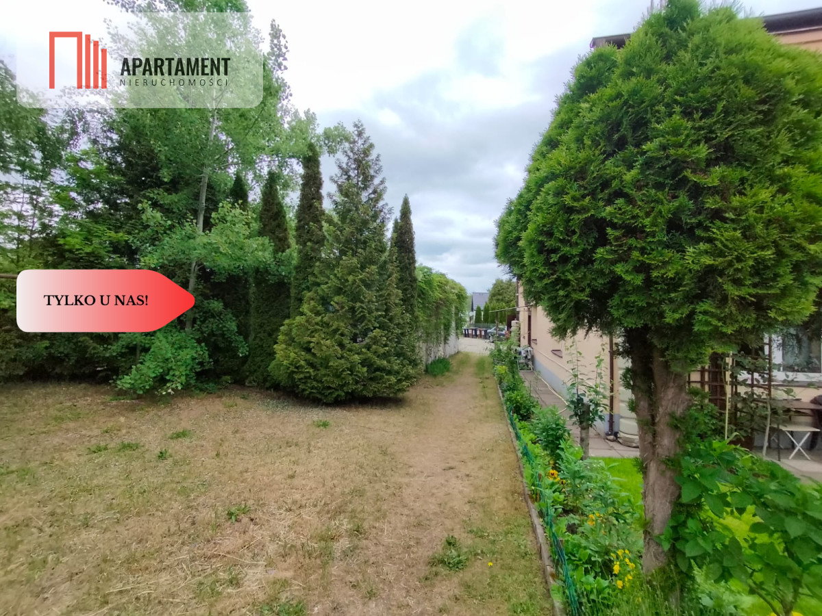 Budynek posadowiony jest na działce o pow. 845 m2. na której znajduje się dwustanowiskowy garaż-49,2-m2 .Teren jest uporządkowany, dający szerokie możliwości aranżacyjne. Posesja jest ogrodzona (stalowa siatka) zadbana. Znajdziemy na niej trawnik, niewielkie drzewa.