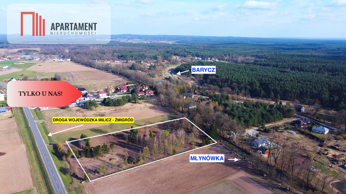 2. Działki leżą bezpośrednio przy drodze wojewódzkiej nr 439 (Milicz - Żmigród). Udział w drodze wewnętrznej wliczony w cenę.