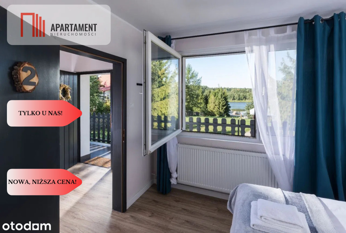 - Sypialnia i przestronny salon z widokiem na jezioro