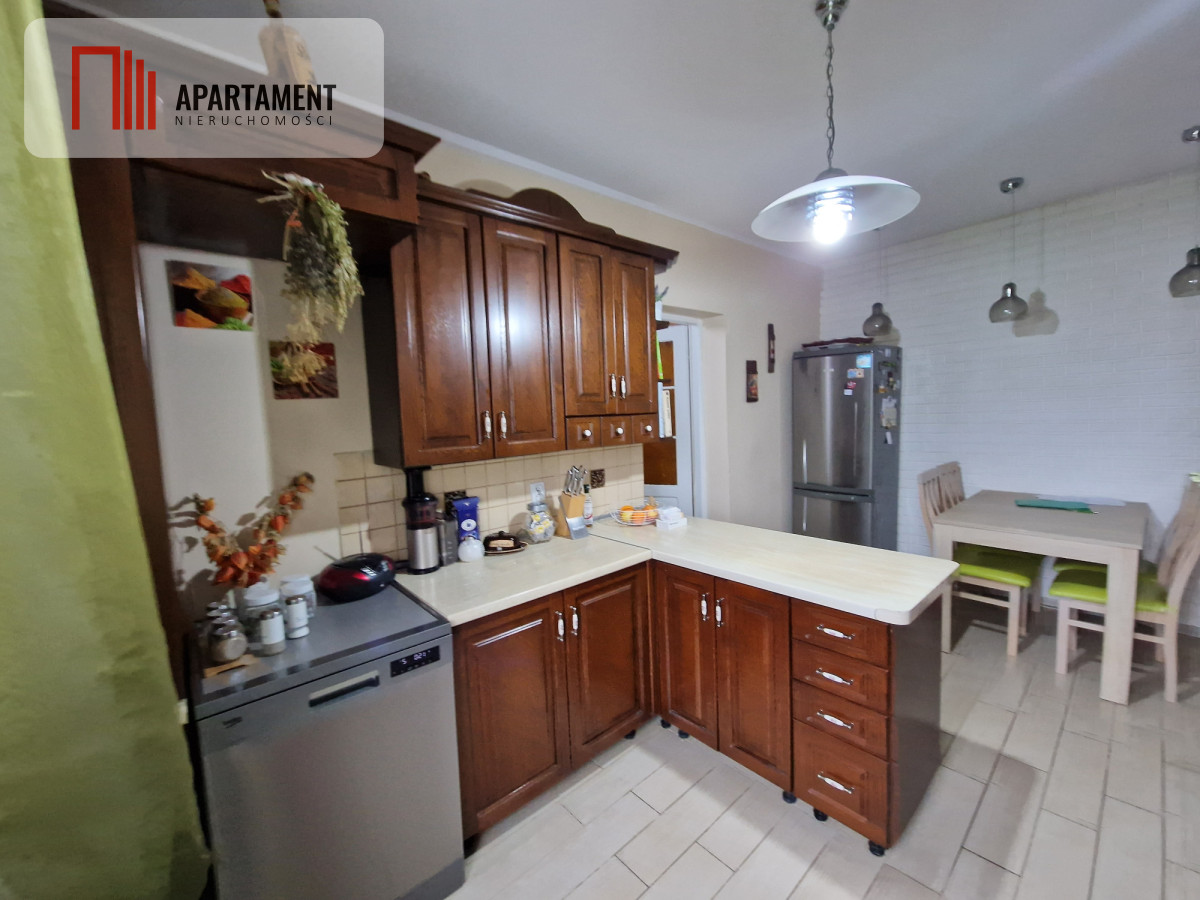 Obecnie nieruchomość to: 1. Mieszkanie o pow. 115 m2. W skład wchodzą: 4 pokoje, kuchnia z jadalnią, łazienka z wanną oraz przedpokój. W korytarzu na wejściu, szafa w zabudowie. 2. Mieszkanie o pow. 74 m2. W skład wchodzą: 3 pokoje, kuchnia, łazienka, komórka. 3. Mieszkanie o pow. 64 m2. W skład wchodzą: 2 pokoje, kuchnia, komórka oraz łazienka z prysznicem. 4. Lokal użytkowy o pow. 202 m2. ( posiada projekt pod gastronomię ) 5. Lokal, który jest przystosowany pod mieszkanie, o pow. 38 m2, posiada łazienkę. 6. 2 piwnice, o łącznej pow. 36 m2. W jednej znajduje się piec na eko-groszek. 7. Garaże na podwórku- wiaty drewniane o pow. 120 m2 oraz garaż murowany- 20 m2. 8. Budynki gospodarcze, o łącznej pow. 30 m2.