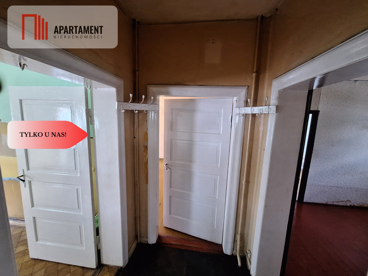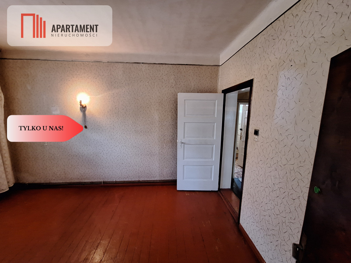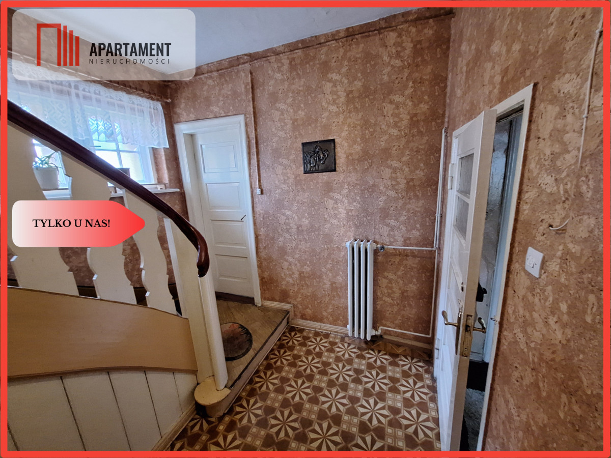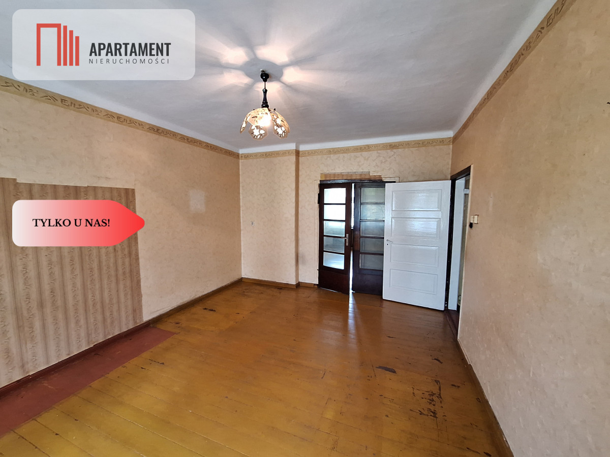 Znajduje się na parterze dwukondygnacyjnego budynku. Składa się z przedsionka, korytarza, łazienki, trzech pokoi i przestronnej kuchni. Do mieszkania przynależy duża piwnica podzielona na kilka pomieszczeń o łącznej powierzchni około 80m2. Na tyłach domu ogród z ogromnym potencjałem, wyjście do niego bezpośrednio z kuchni daje ogromne możliwości w zakresie organizacji strefy wypoczynku na świeżym powietrzu.
