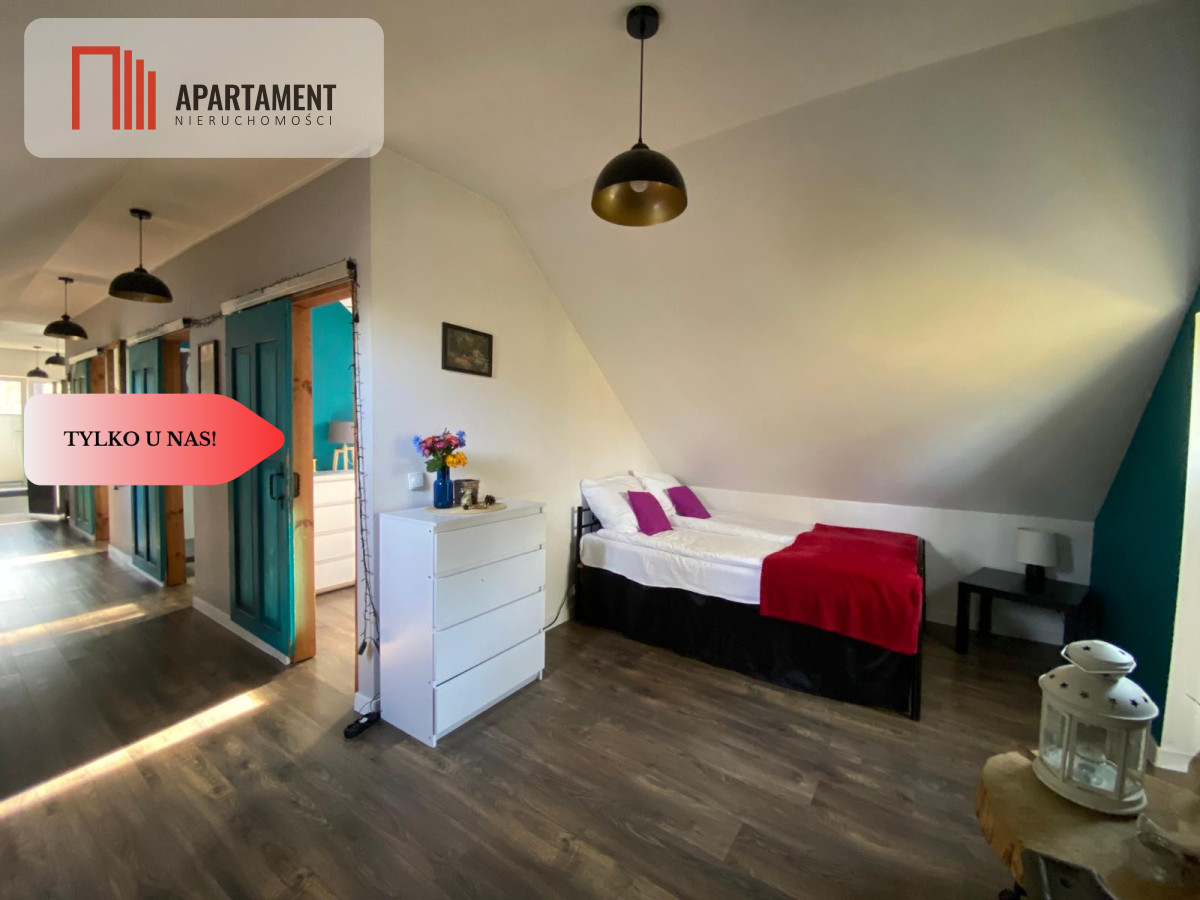 Góra domu to apartament 120m2 z osobnym wejściem i parkingiem na 5 aut