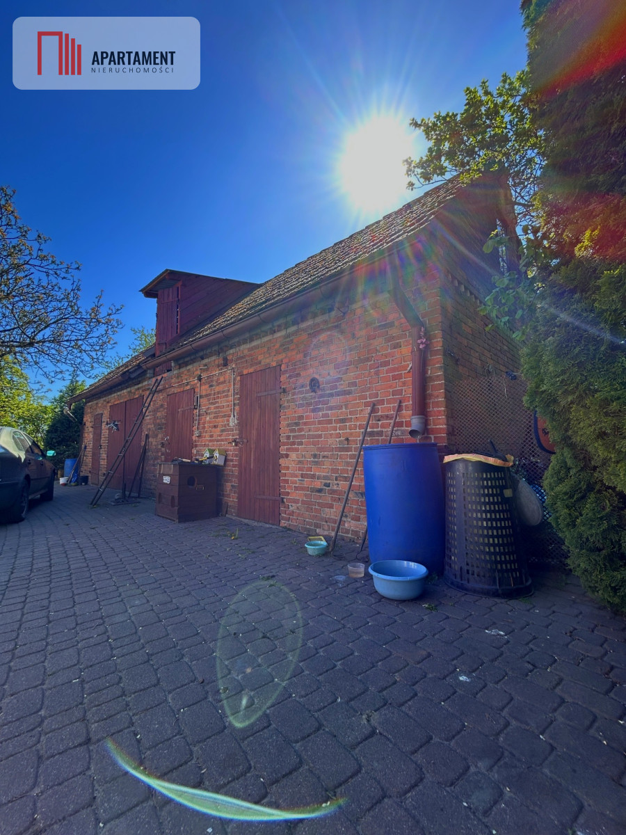 Dom piętrowy murowany z 1969r, o łacznej powierzchni 200m2 podpiwniczony + budynek gospodarczy 150m2 z czerwonej cegły położony na działce 1,2 hektara ze stawem do odświeżenia/remontu.