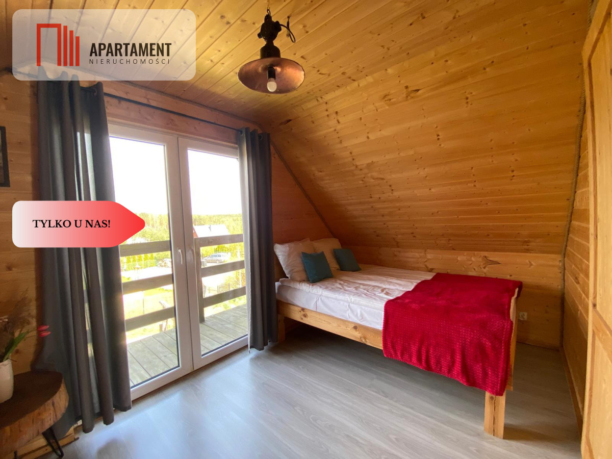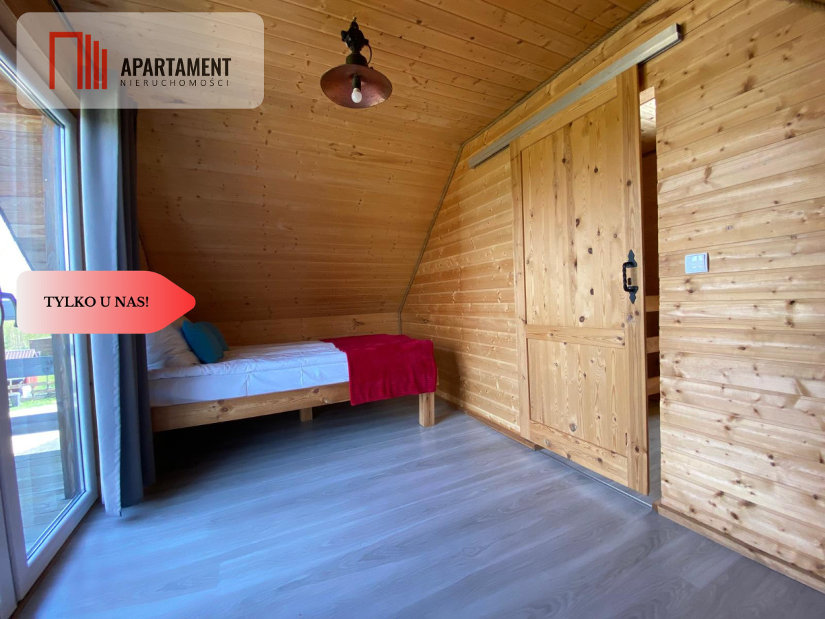 Domek o wymiarach 5x7m2 - na parterze znajduje się salon z aneksem kuchennym oraz łazienka z kabiną prysznicową, - na piętrze są dwie sypialnie i wnęka na garderobę, - balia przy domku - parking dla aut -wiaty na drewno - plac zabaw dla dzieci - ogród z miejscem do grillowania Duży taras, idealne miejsca na wieczorne posiedzenie przy świetle klimatycznego oświetlenia, zaś rankiem poranna kawa przy akompaniamencie śpiewu ptaków.