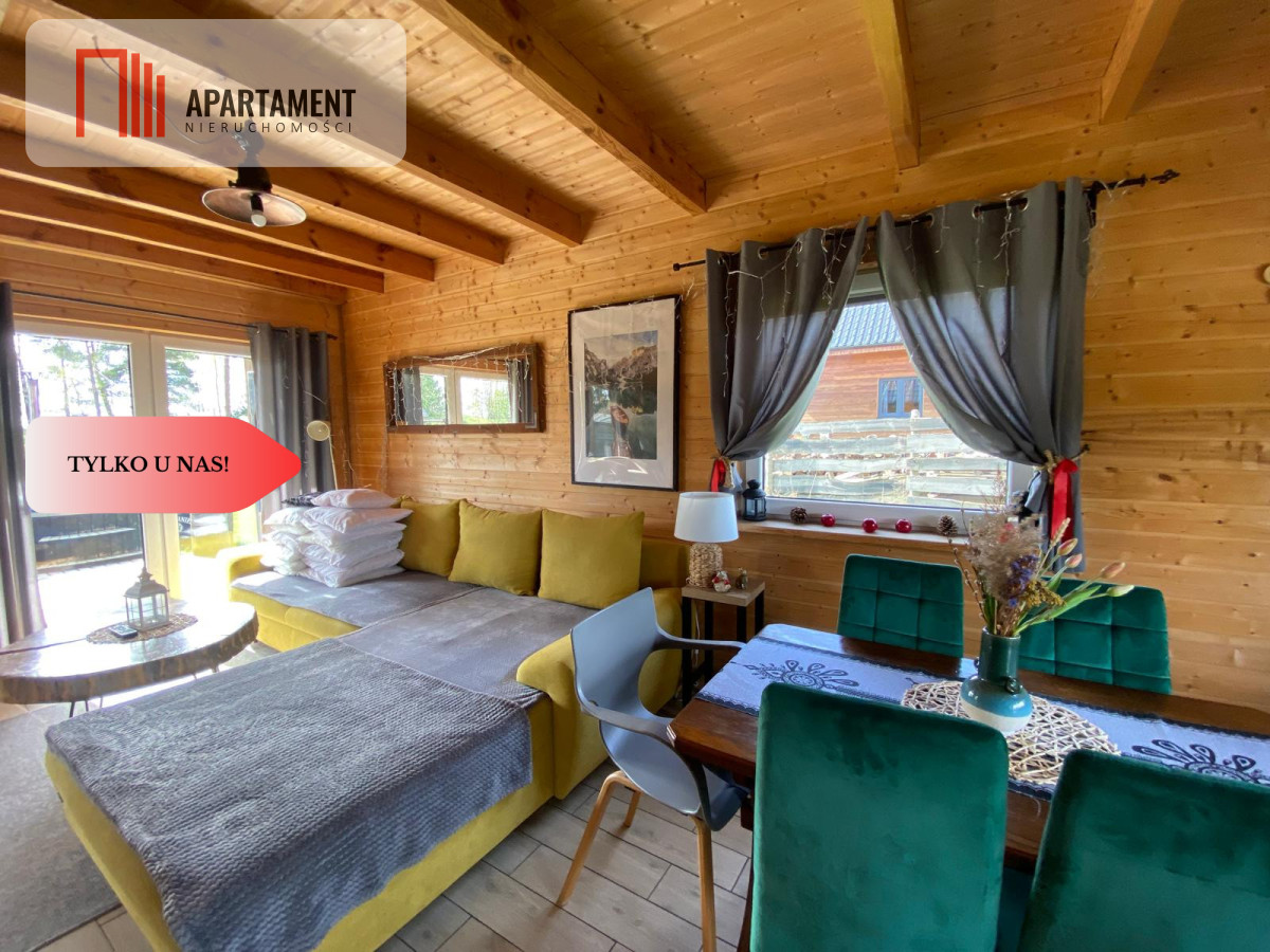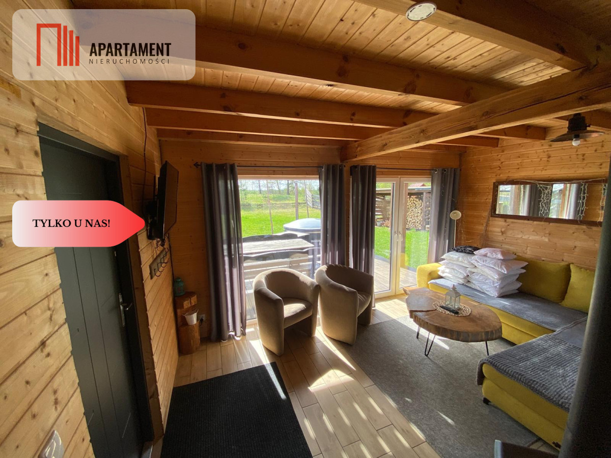 Domek o powierzchni70m2 z 2019 roku postawiony na działce 1000m2. Jest to nowoczesny styl budowy w oparciu o najlepszej jakości materiały wykonawcze. - ocieplenie 25 cm piana Pur plus poduszka cieplna wewnętrzna 5 cm - kominek - duże okna by móc podziwiać piękne widoki za oknem - dom jest typu termos z racji na porządne i grube ocieplenie ścian jak i podłogi - w środku karton-gips - do domku przynależy taras ok. 28m2 wraz z meblami tarasowymi - w pełni urządzony i wyposażony - domek całoroczny