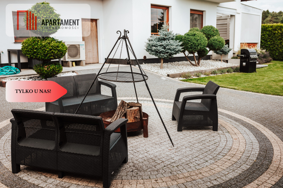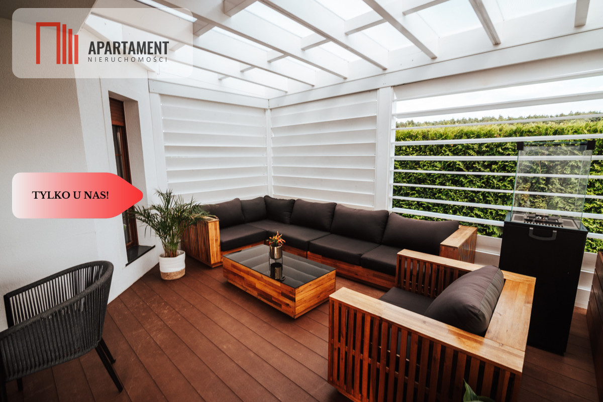 Dom został wykończony ze starannością z użyciem wysokiej jakości materiałów: m.in. Schody dębowe, Meble z drewna akacjowego, Taras wykonany z deski naturalnej…