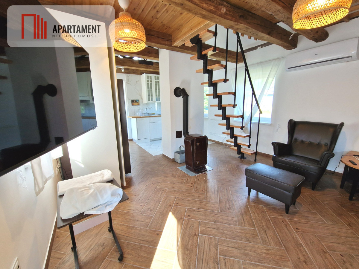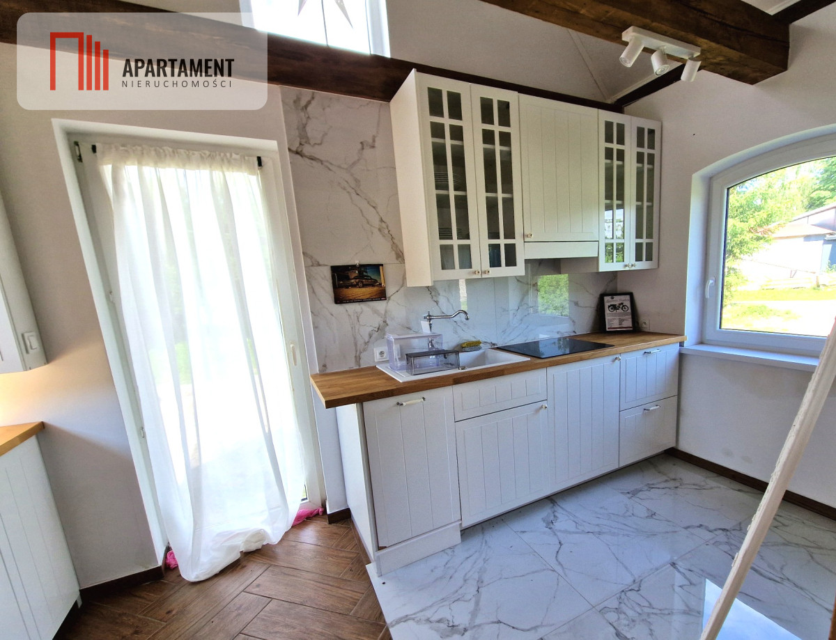 - domu, w pełni wyposażonego - kuchnia w zabudowie, łazienka z prysznicem.