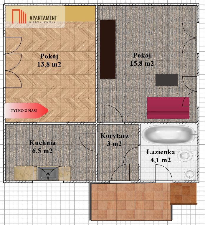 Zgodnie z Ustawą z dnia 26 lipca 2024 r. o zmianie ustawy o prawie autorskim i prawach pokrewnych, ustawy o ochronie baz danych oraz ustawy o zbiorowym zarządzaniu prawami autorskimi i prawami pokrewnymi, wykorzystywanie autorskich pomysłów, rozwiązań, kopiowanie, rozpowszechnianie zdjęć, fragmentów grafiki, tekstów opisów w celach zarobkowych, bez zezwolenia autora jest zabronione i stanowi naruszenie praw autorskich oraz podlega karze. Znaki towarowe i graficzne są własnością firmy Nieruchomości Apartament.