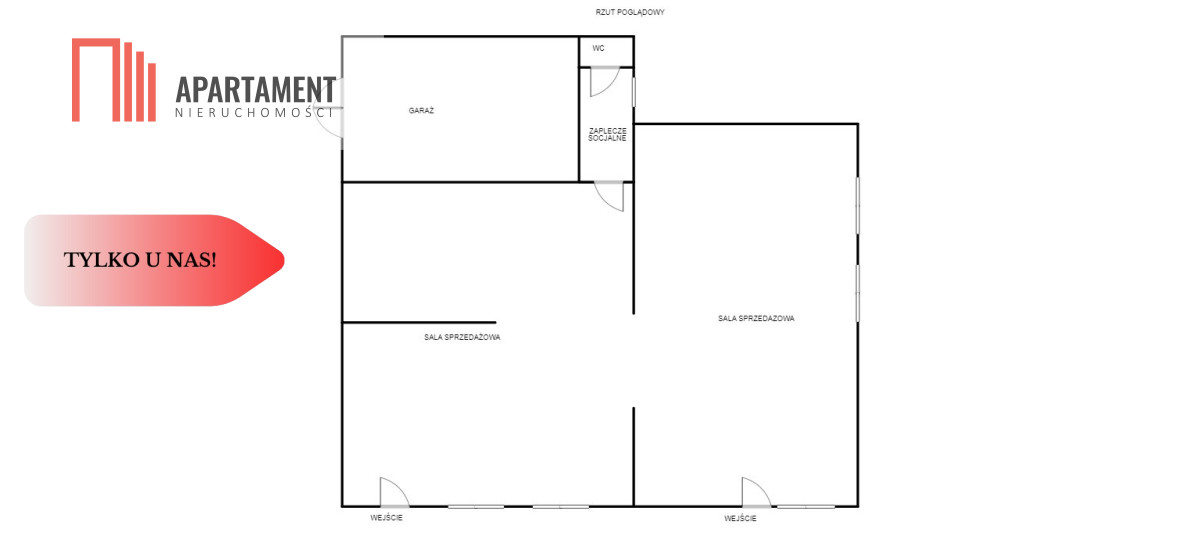 PARTER * hala sprzedażowe 65m2, 40m2, 30mk2 * pomieszczenie socjalne 4.50m2 * WC 1,25m2 * garaż 28m2 PIETRO * otwarta przestrzeń 112m2