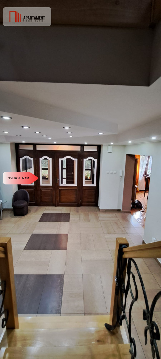 Budynek wolnostojący o powierzchni ok. 370 m2 składa się z: -przedsionka -przestronnego przedpokoju z klatką schodową -umeblowanej, dużej kuchni z jadalnią -słonecznego salonu z wyjściem na ogród -dwóch sypialni -łazienki z wanną i prysznicem -biura Piętro -pięć sypialni -łazienka z wanną i prysznicem -pralnia-suszarnia