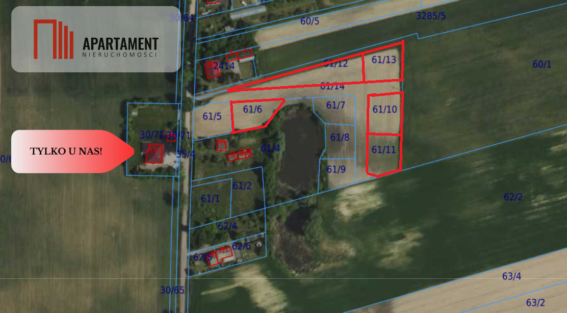 Powierzchnia i ceny działek : * działka 61/11 - 926m2 90zł/m2 83 340,00 * działka 61/12 - 1445m2 85zł/m2 122 825,00 * działka 61/10 - 955m2 90zł/m2 85 950,00