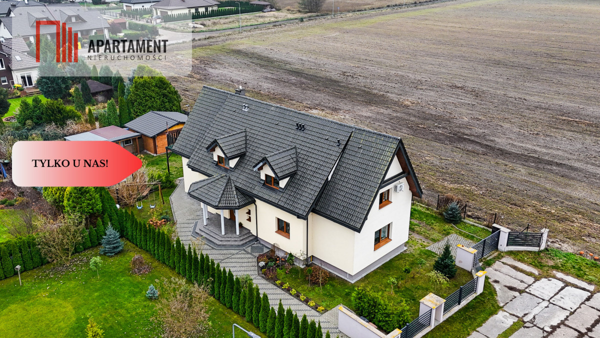 Budynek o powierzchni całkowitej 307 m2 oraz powierzchni użytkowej 202,4 m2 wykończony i zamieszkany od 2016r składa się z parteru, piętra oraz poddasza możliwego do adaptacji.
