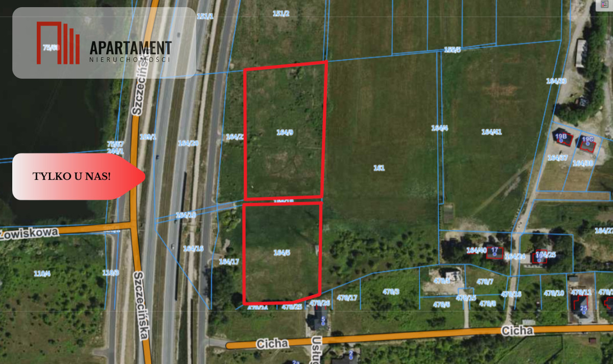 Do działek zjazd z drogi technicznej biegnącej wzdłuż drogi ekspresowej.