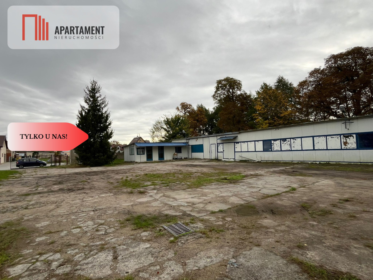Na działce posadowiony budynek typu hala o pow ok 750 mkw, wysokość max 8 m, o konstrukcji stalowej, obudowany częściowo blachą i płytą obornicką. Posadzka twarda wylewka, częściowo z płyty ceramicznej przemysłowej, przystosowanej do transportu i magazynowania., dach dwuspadowy, podział pomieszczeń wewnętrznych zgodny z funkcjami użytkowymi.