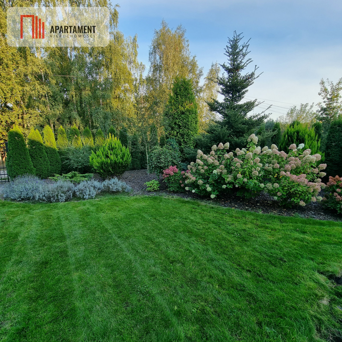 Ogród o powierzchni 966 m² zaprojektowany przez architekta krajobrazu.System automatycznego nawadniania firmy RainBird.