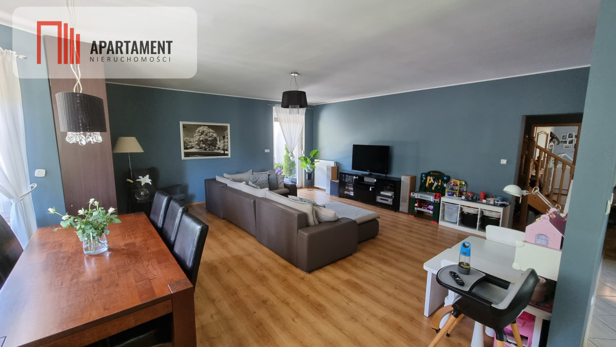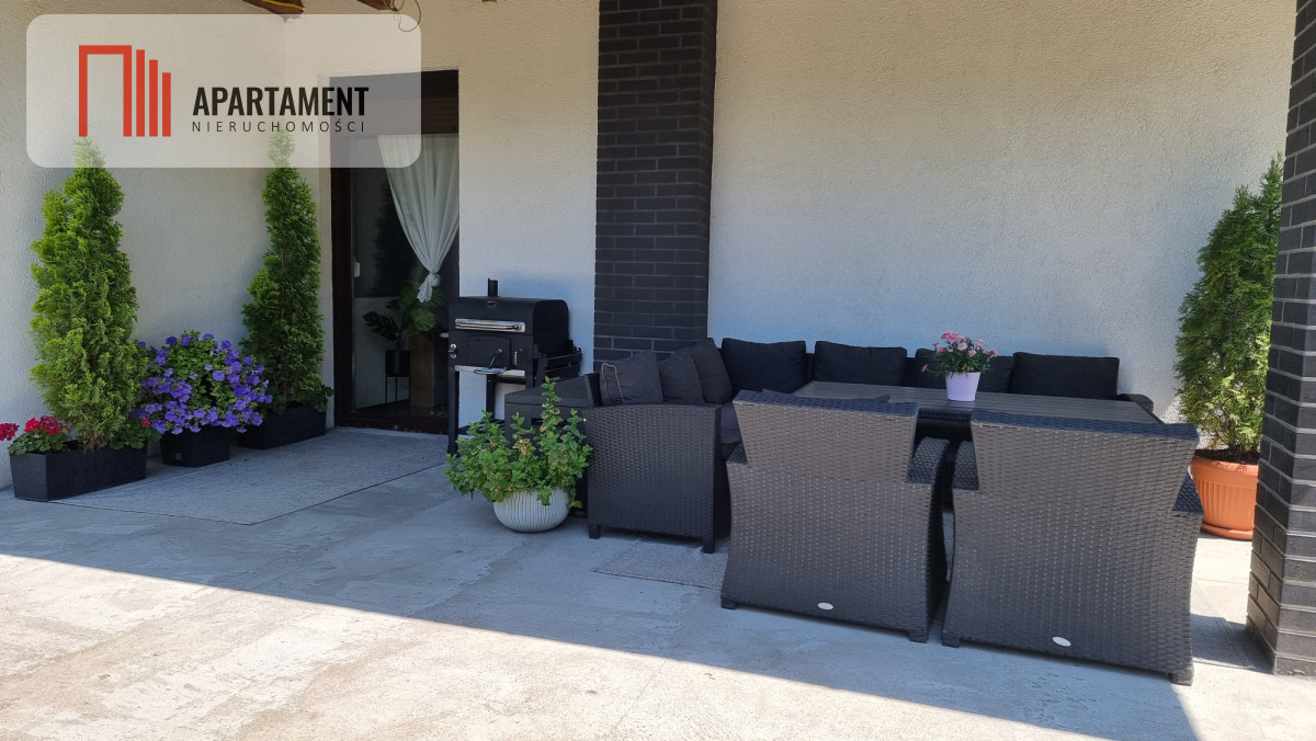 Powierzchnia całkowita: 255 m² Powierzchnia działki: 966 m² Układ: parter + poddasze Liczba pokoi: parter: przestronny salon,2 sypialnie, gabinet. poddasze: 100m² otwarta przestrzeń Kuchnia: oddzielna, w pełni wyposażona Taras: częściowo zadaszony Garaż: jednostanowiskowy Ogrzewanie: Pompa ciepła Panasonic - założona w 2022 - na gwarancji. Panele Fotowoltaiczne: 10kw Panele Hyundai na dachu, falownik SolarEdge. Instalacja założona w 2022 roku - na gwarancji.