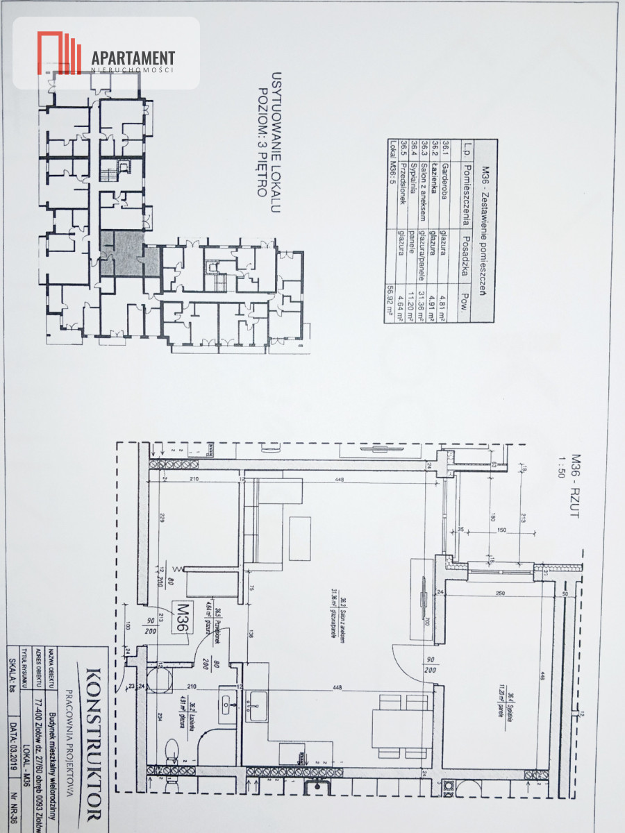 Cena 410 000 zł. Powierzchnia użytkowa: 57,56 m2
