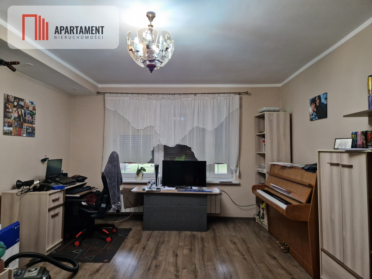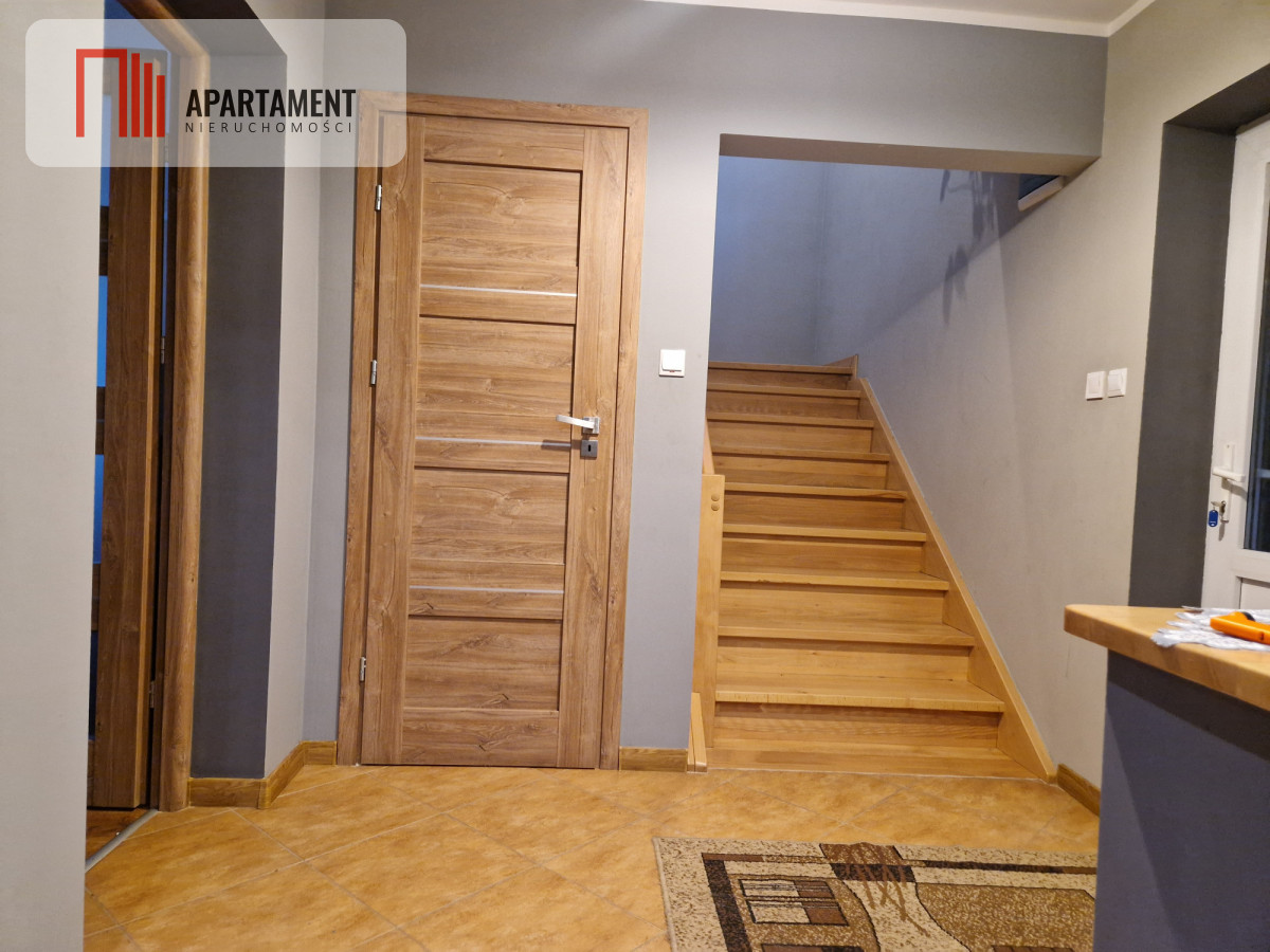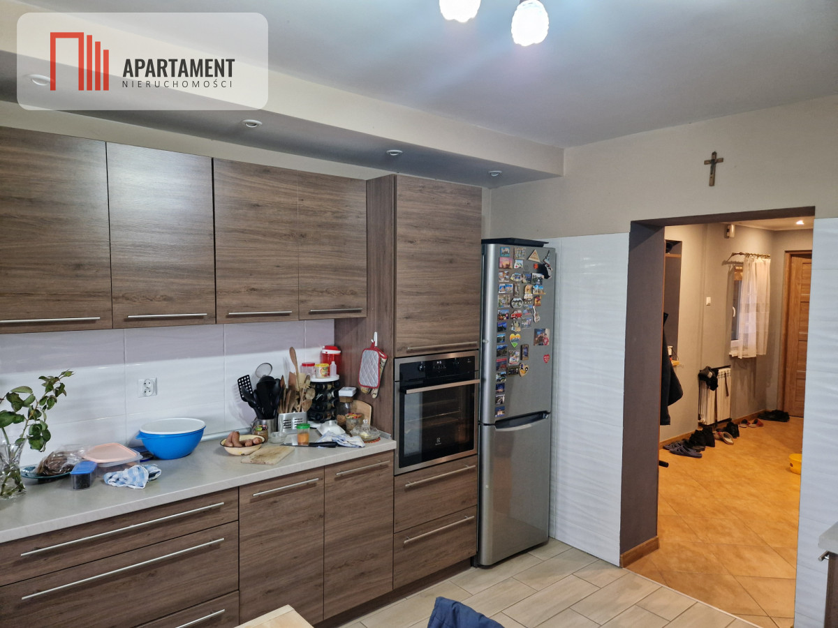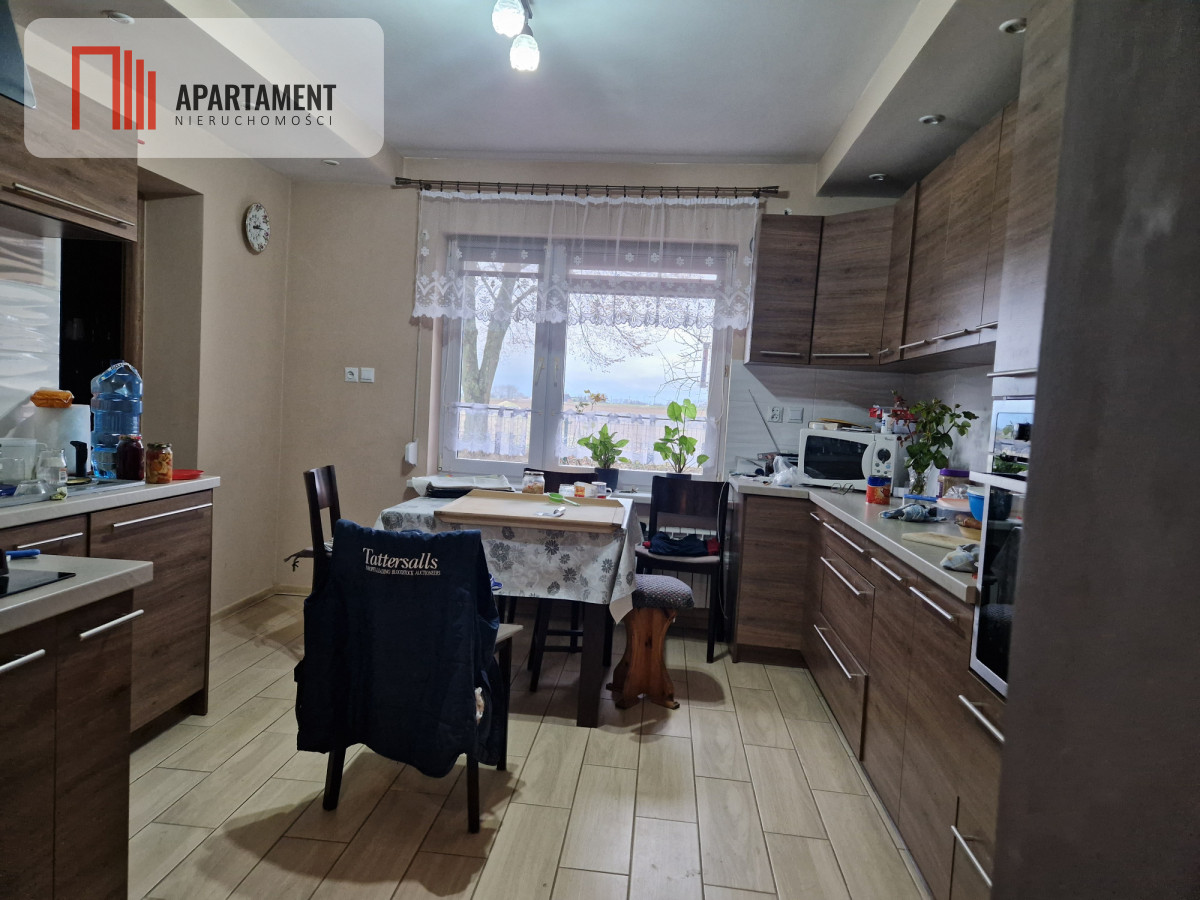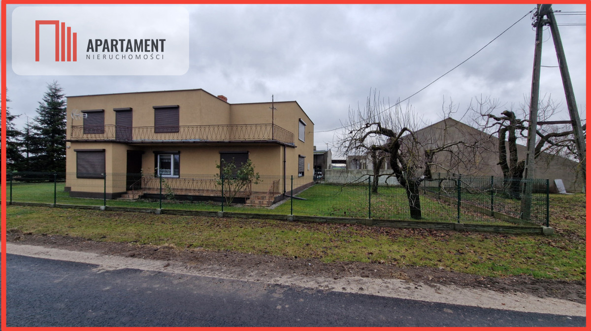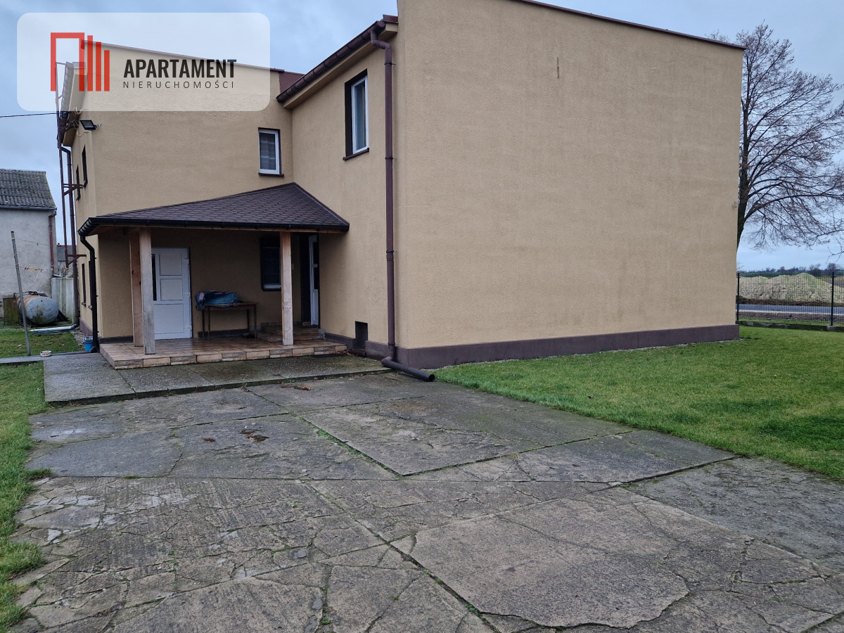 Najbliższe sąsiedztwo znajduje się w odległości około 80m. Powierzchnia mieszkalna zajmuje parter i piętro domu. Na parterze znajduje się salon, kuchnia, 2 pokoje, łazienka, przedpokój z klatką schodową. Górna kondygnacja składa się z holu, 3 pokoi i łazienki oraz tarasu. Dach płaski, ocieplony styropianem i kryty papą. Okna PCV w kolorze białym, dwuszybowe. W całym domu drzwi wymienione na nowe. Na podłogach znajdują się płytki ceramiczne i panele. Dom jest ogrzewany piecem na ekogroszek. W domu może pozostać jego częściowe wyposażenie. Dom przygotowany do zamieszkania, na bieżąco unowocześniany. Dostępność do ustalenia. Wymaga jedynie odświeżenia. Budynek podłączony do sieci energetycznej 400V i wiejskiej sieci wodociągowej. Działka posiada około 600mkw. utwardzonego podwórza, w całości ogrodzona. Znajdują się na niej nasadzenia drzew owocowych i ozdobnych. Dojazd drogą asfaltową.