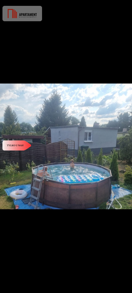 Na terenie działki znajduje się zadbany murowany, ocieplony i funkcjonalny domek wielkości 35 mkw. w którego skład wchodzą dwa pokoje, kuchnia, łazienka z prysznicem oraz przedpokój, jak i zadaszony taras na który wyjdziemy drzwiami balkonowymi z jednego z pokoi. Okna z roletkami zostały wymienione na nowe, instalacja elektryczna jest po wymianie, na ścianach gładź gipsowa, podłogi z paneli, nowy dach. Ciepła woda pochodzi z przepływowego podgrzewacza, na działce szambo. Domek podpiwniczony na całości, tam też znajdziemy zadbane i wykafelkowane trzy dodatkowe pomieszczenia, czyli warsztat oraz dwa pokoje, które latem dadzą ukojenie w upalne dni. Zagospodarowana piwnica powiększa budynek o kolejne 35 mkw., co daje nam w sumie 70 mkw. użytkowych. Na posesji znajdują się dwa baseny, duży i mały, mini plaża dla dzieci, która zapewne dostarczy maluchom wiele wrażeń. Na zewnątrz została też położona nowa kostka brukowa.