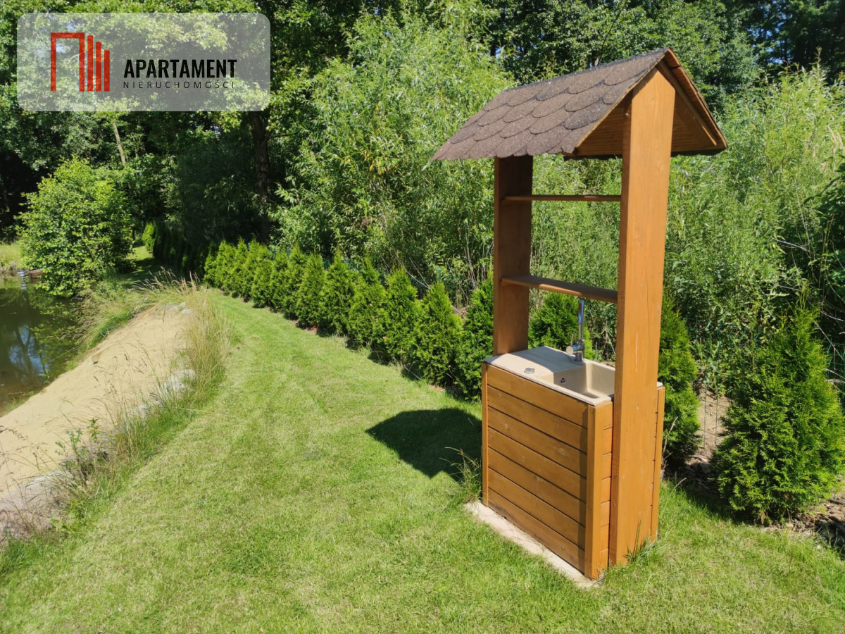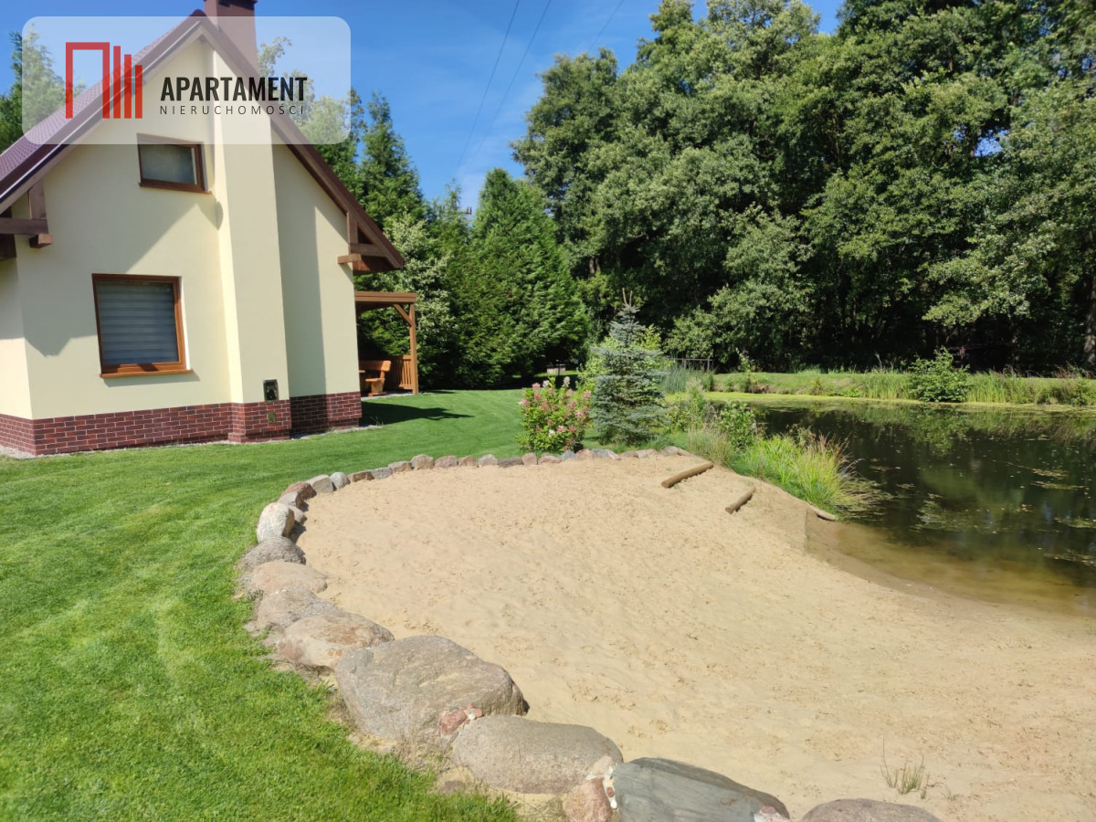 Dominikowo, jedna z tych miejscowości Pomorza Zachodniego która przywołuje pozytywne wibracje. Sam środeczek Drawieńskiego Parku Narodowego. Lasy, jeziora, rzeki, spływy kajakowe, ( Drawą i Korytnicą), żagle, wędrówki, grzyby, jagody, ryby, zapach żywicy. Mnóstwo leśnych zwierząt, możliwość spotkania na wolności żubra, łosia, wydry, bobrów, bielika, puchacza - sama natura w sporej pigułce. Miejsce jakby już kultowe, zapewniające dobry klimat, pozytywnych ludzi, zaplecze prywatnych wytwórców miodu, serów, wędlin, dobrego pieczywa. ( i swojskich jajek od kur zielononóżek ☺️). Miejsce ukryte wśród lasów, pełne historii, starych młynów, traktów, pałacy i zamków, naprawdę wyjątkowe. Szlaki pieszych i rowerowych wędrówek, z postojami na klimatycznych mostach i jazach . Ale do tego wszystkiego jest niezły bonus, świetna, duża działka, skrajna , ( z dwóch stron bez sąsiadów ), pięknie zagospodarowana, zieleń, nasadzenia, strumień graniczny z bieżącą wodą, pełen ryb. Piękny, całkiem duży, czysty i głęboki ( do 3 m) staw kąpielowy z prywatną plażą, zasilany w systemie ciągłym w świeżą wodę bezpośrednio ze strumienia. Możliwość kąpieli, plażowania na prywatnym, intymnym terenie. Na działce dwa domy wczasowe z pełnym wyposażeniem, ( lodówka, kuchnia indukcyjna, piekarnik, zmywarka, pralka, tv , internet ), 55 mkw, parter to salon z kominkiem, kuchnia, łazienka, poddasze to dwie niezależne sypialnie. Domy są z roku 2022, świeże i wykonane w wysokim standardzie, obok każdego domu altana z miejscem wypoczynkowym, meblami z drewna idealna do spożywania posiłków, integracji czy wspólnych rozmów i zabaw. Dodatkowo wiata na drewno i sprzęt . Całość nieruchomości położona jest w odległości ok 15 minut leniwym spacerem od brzegów jeziora w Dominikowie i głównej plaży. Ta bajkowa nieruchomość położoną jest 100 km od Szczecina, 125 km od granicy z Niemcami, 146 km od Poznania. To dobra lokalizacja, szybki dojazd zarówno na krótki weekendowy pobyt, jak i na dłuższy, sycący wypoczynkiem urlop od maja do końca jesieni. Sława grzybobrań w okolicznych borach i lasach jest nie do podważenia. Jest to świetna opcja na miejsce do rodzinnego wypoczynku, oraz jako inwestycja pod wynajem, w świetnym stanie, bez nakładów, zadbana z uwagą o każdy szczegół, wręcz wysmaczona.