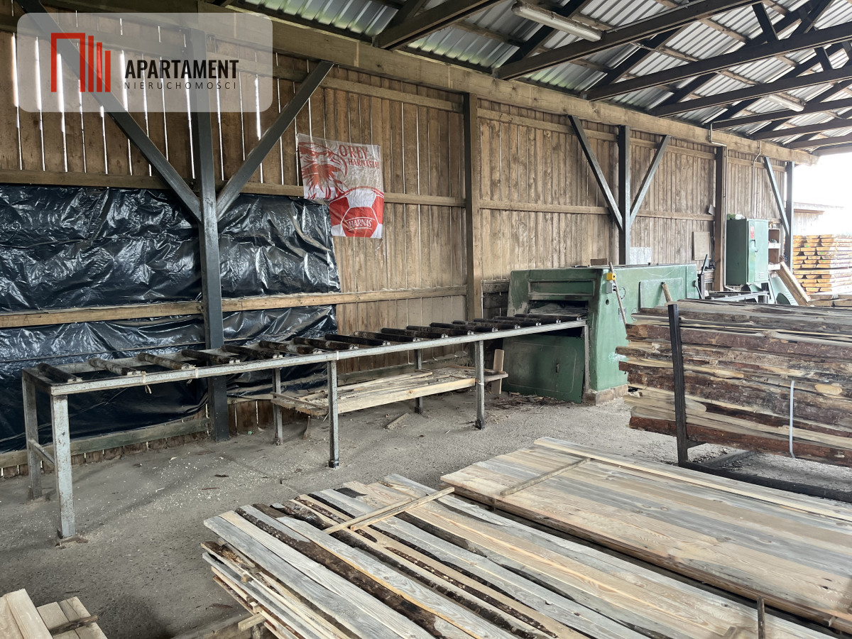 Hala produkcyjna o powierzchni 1000 m² Hala optymalizerka Budynek socjalny / hotel Magazyn Wiata trak pionowy #2 Wiata wielopiła Wiata trak tarczowy Cesja na drewno: 3000 m³ #30 Trafostacja z kompensacją mocy oraz korzystna umowa na prąd (ostatnia faktura: 490 zł/MWh)
