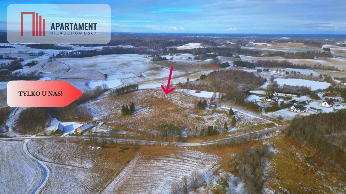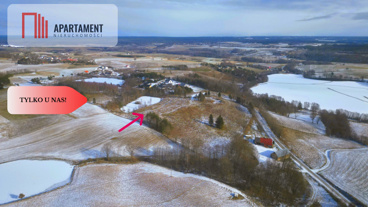 Działka wyniesiona jest 70m nad powierzchnie jeziora, co zapewnia fantastyczny widok na panoramę akwenu i liczne krajobrazy. Dodatkowym atutem jest duży staw znajdujący się na działce sąsiadującej.