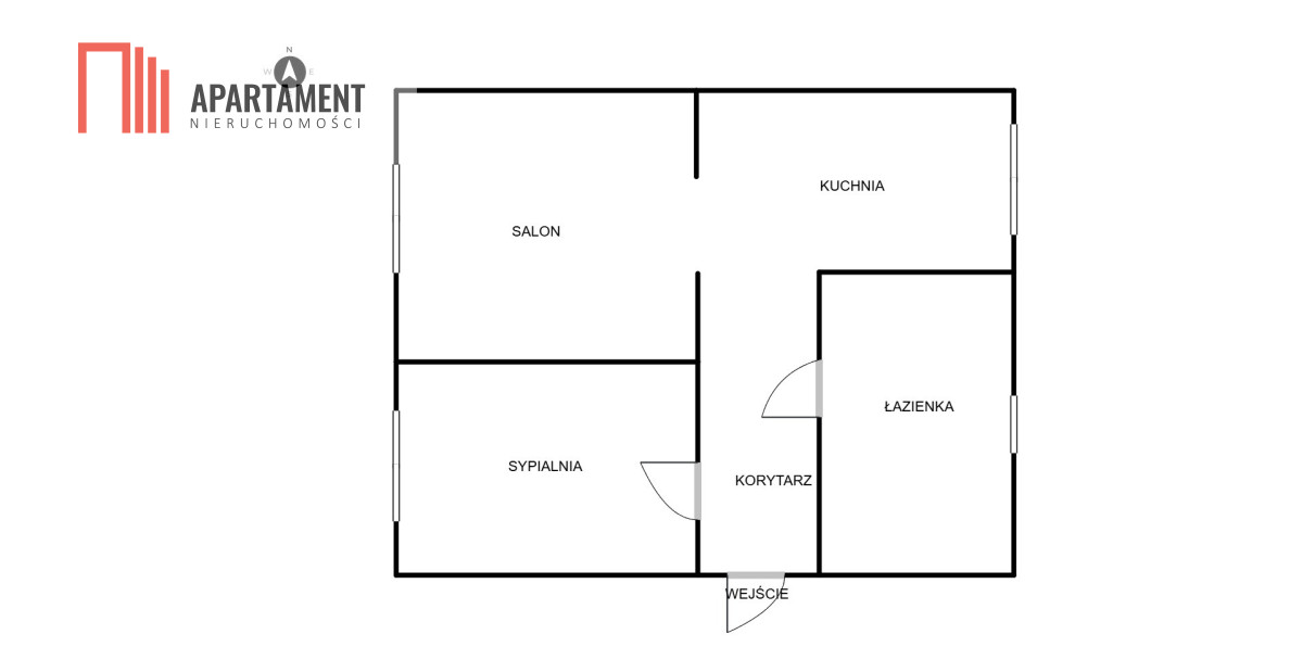 W skład mieszkania wchodzi:-Korytarz prowadzący bezpośrednio do kuchni,