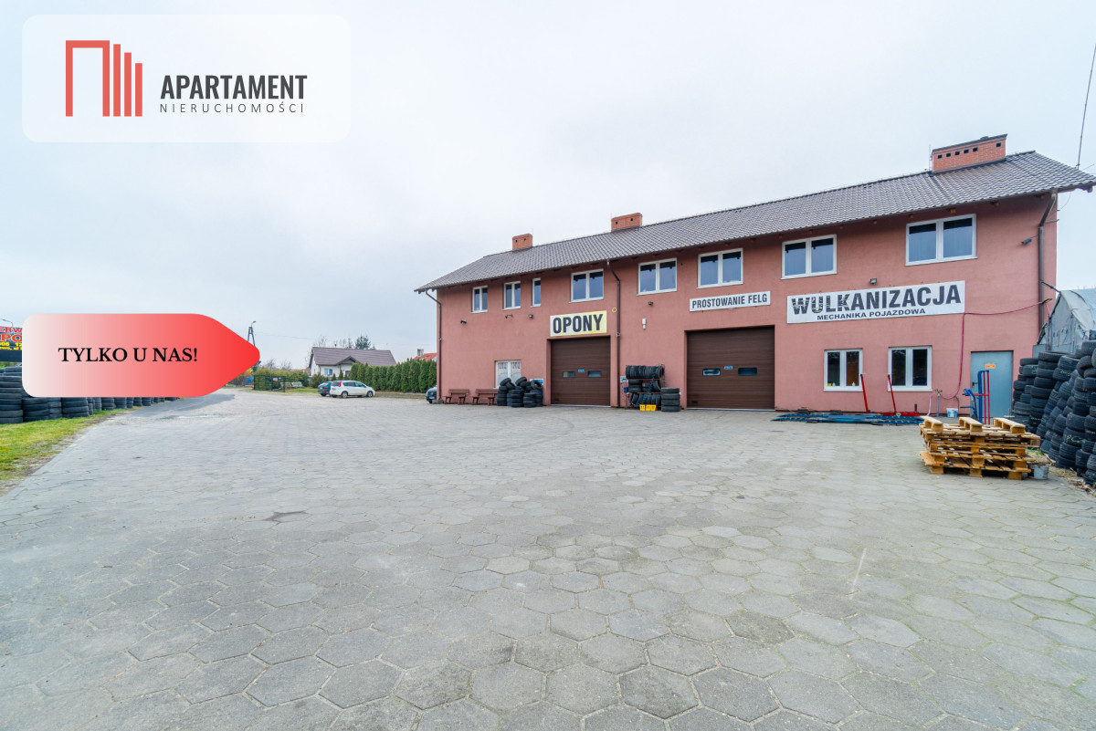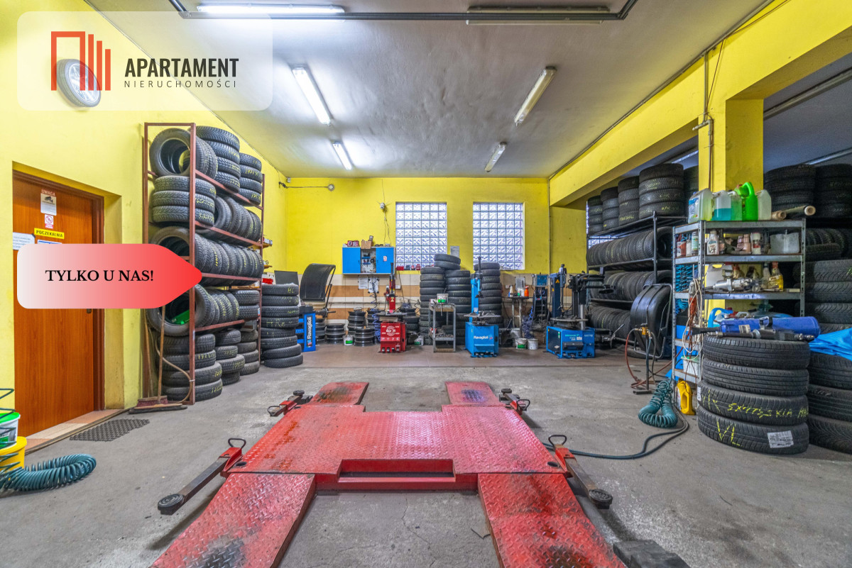 Kompletnie wyposażony warsztat 112m2 (kanał na całej długości, duże bramy wjazdowe) Pomieszczenia socjalne, magazynowe, szatnia, biuro/sklep, poczekalnia WC dostosowane dla osób niepełnosprawnych
