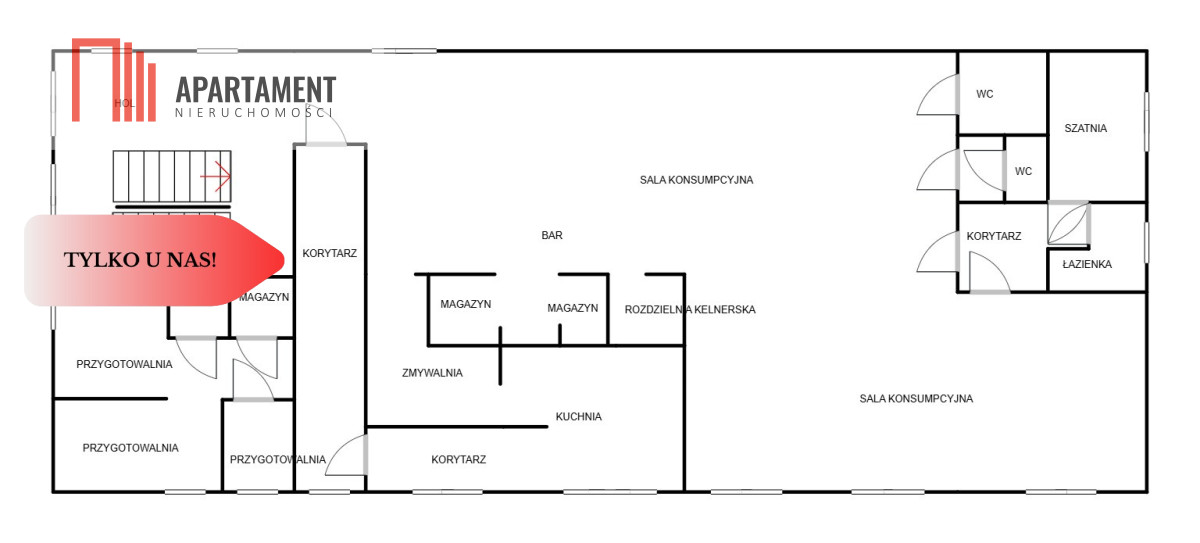 Restauracja z przestronną salą oraz pełnym zapleczem kuchennym. Istnieje możliwość rozwinięcia cateringu lub organizacji przyjęć