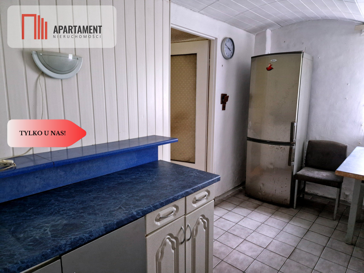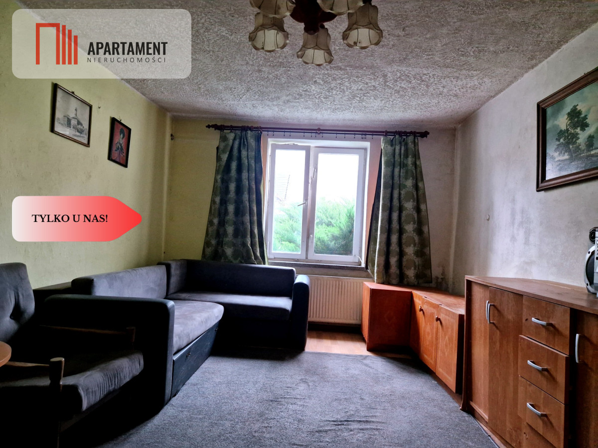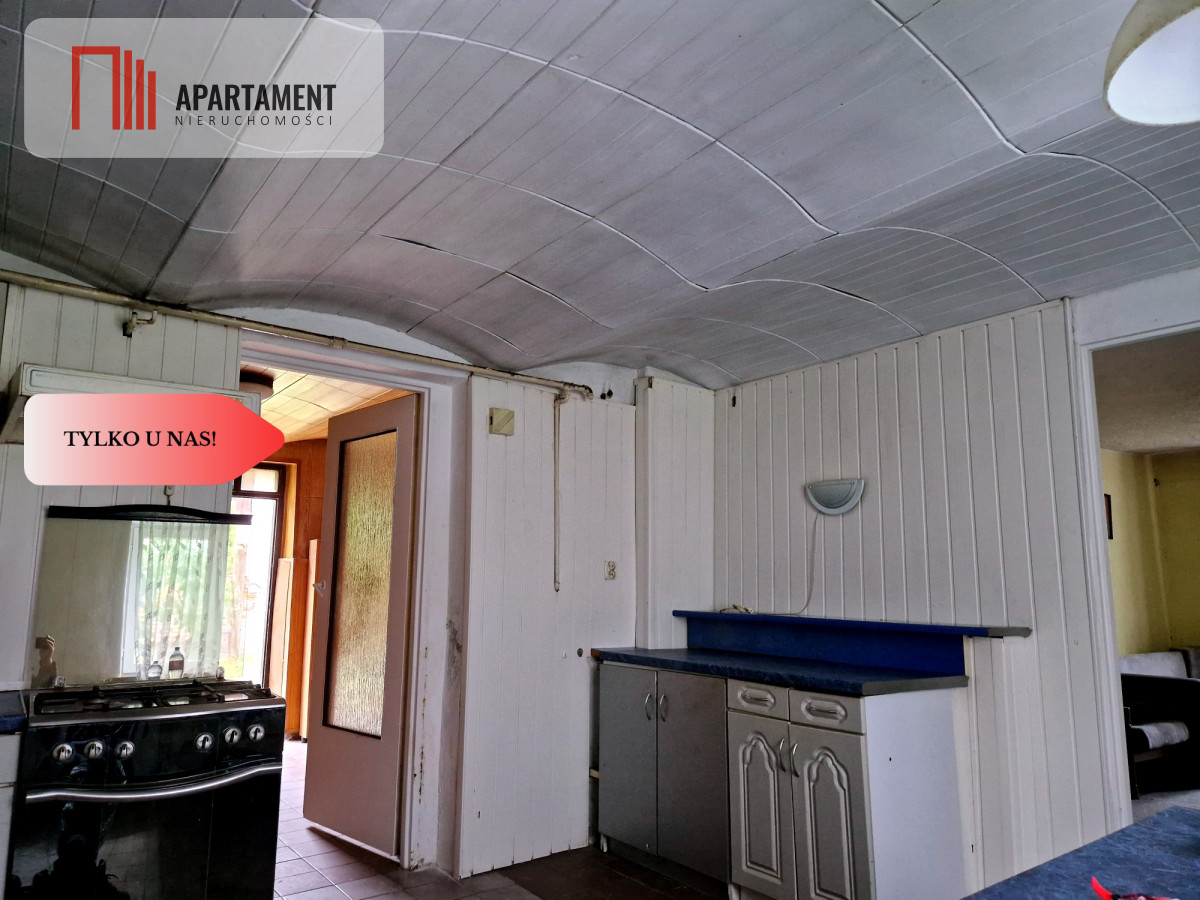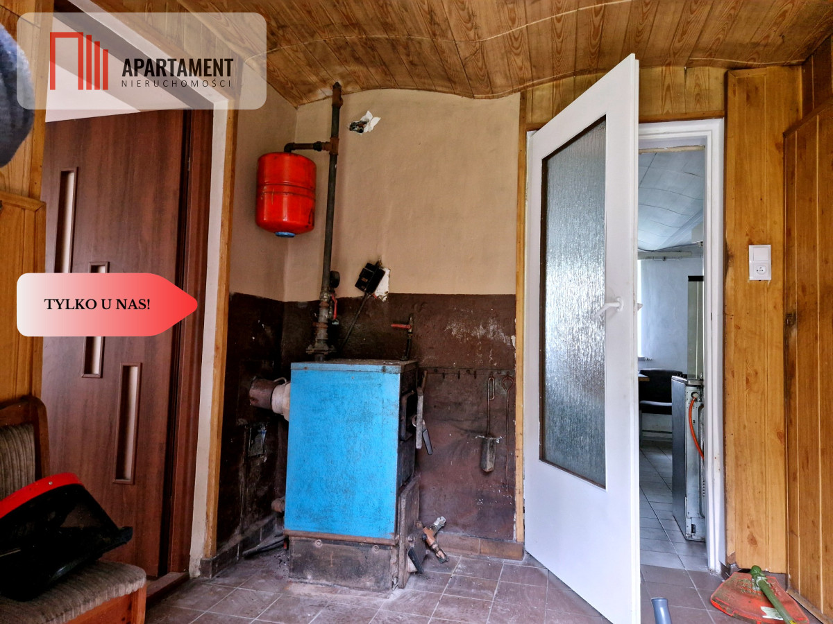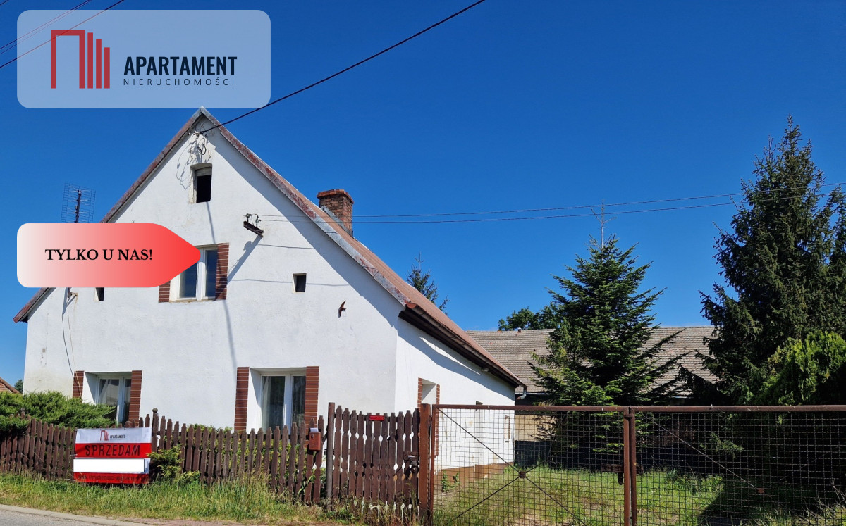 Dom na parterze składa się z 3 pokoi, łazienki, kuchni, toalety, druga kondygnacja do zagospodarowania. Na terenie posesji znajduje się również stodoła oraz budynek wolnostojący-gospodarczy. Okna w budynku są drewniane, parapety kamienne, podłogi częściowo wyłożone płytkami, dach pokryty blachą. Ogrzewanie CO (grzejniki w każdym pomieszczeniu).