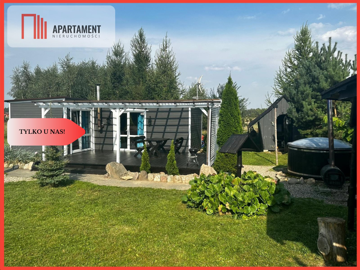 Domek z 2017 roku, jest to nowoczesny styl budowy w oparciu o najlepszej jakości materiały wykonawcze. - ocieplenie wełna - dom jest typu termos z racji na porządne i grube ocieplenie ścian jak i podłóg - w środku karton-gips - taras ok. 30m2 wraz z meblami tarasowymi - kominek - duże okna, by móc podziwiać piękne widoki za oknem - domek w pełni urządzony i wyposażony - balia przy domku - miejsce na parking - miejsca na ognisko - wiata na drewno Domek o wymiarach 5x7m2 - parterowy - duży salon z aneksem kuchennym - sypialnia - łazienka z kabiną prysznicową