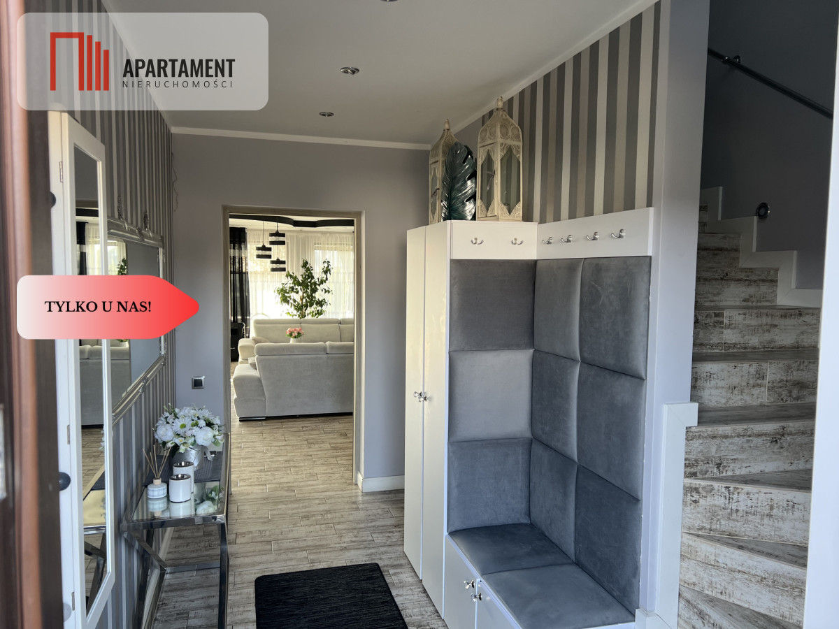 Budynek o bardzo dobrym stanie technicznym, wybudowany w 2015 roku, składa się z dwóch segmentów o powierzchni całkowitej ok. 267,73m2 każdy. Jeden z nich jest w pełni wykończony i zamieszkały, natomiast drugi pozostaje w stanie surowym zamkniętym, dając przyszłemu właścicielowi szerokie możliwości adaptacyjne.
