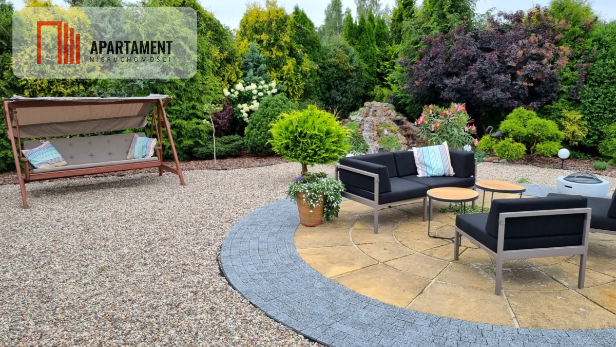 Nieruchomość charakteryzuje się wysokim standardem wykończenia: drewniane podłogi, ogrzewanie podłogowe w części budynku, zewnętrzne rolety, a także duży ogród z systemem nawadniania i koszenia trawnika.