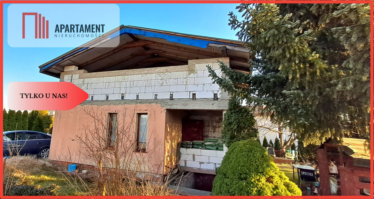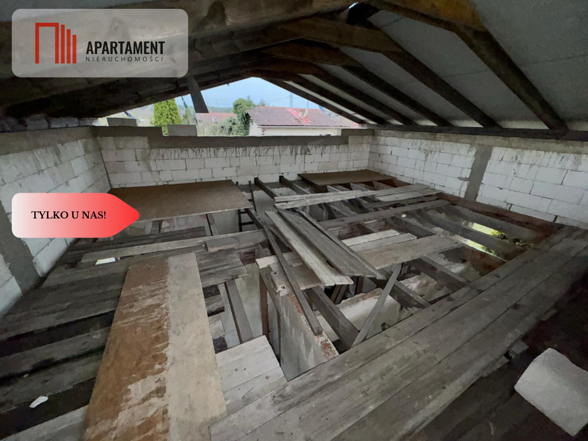 Na działce narożnikowej o powierzchni 385 mkw. znajduje się murowany domek w stanie surowym w którego w skład wchodzi;
