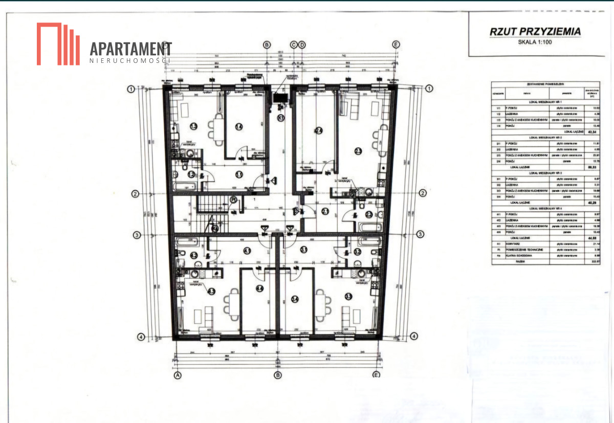 - przyziemnie/parter: 4 lokale - łącznie 222,87 m2,