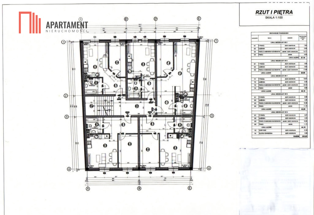 - I piętro: 5 lokali - łącznie 222,87 m2,