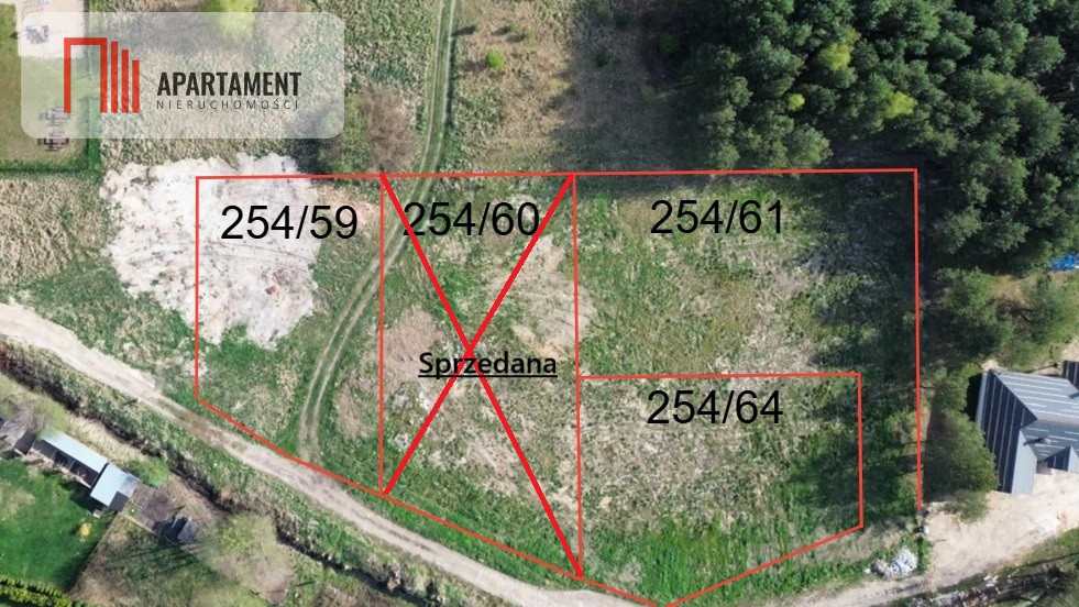 Powierzchnie działek: 1372 m² 1689 m² - sprzedana 1547 m² 1426 m²