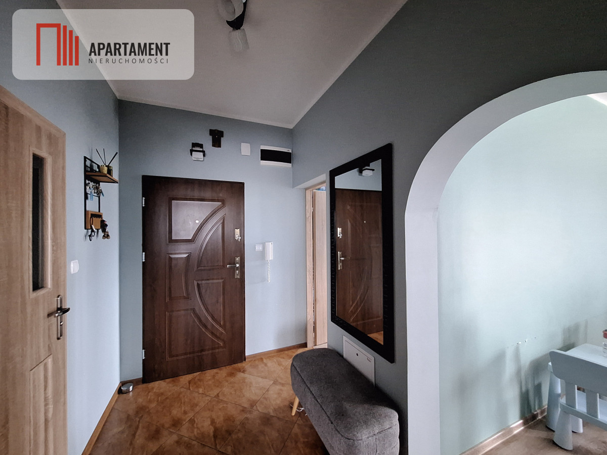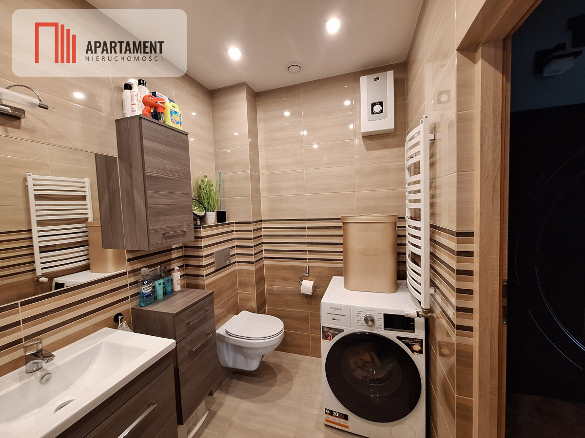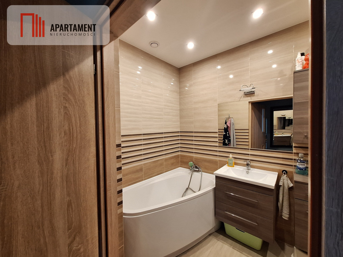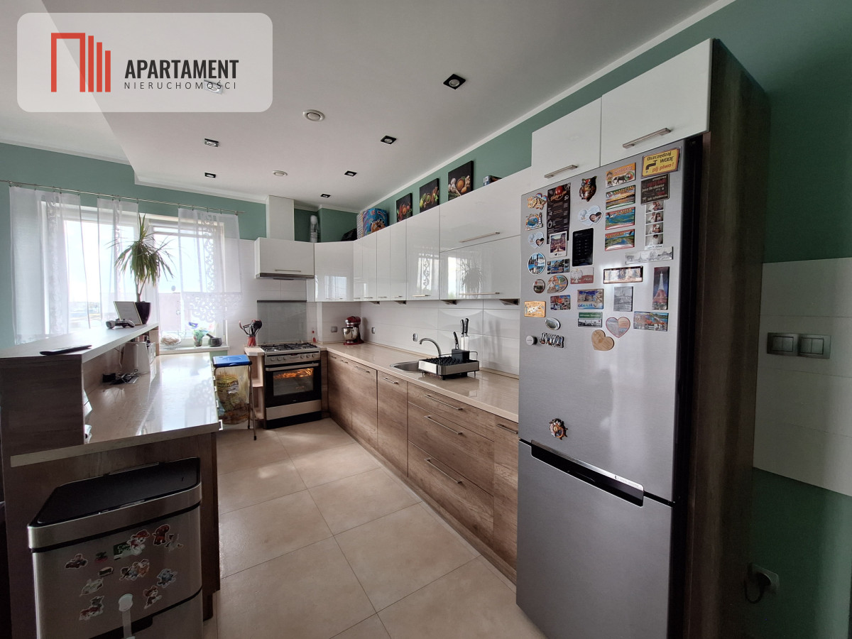 Mieszkanie składa się z salonu z aneksem kuchennym (31,28m2), dwóch sypialni 14,86m2, oraz 15,44m2, łazienki z wanną (4,60m2) i przedpokoju (5,09m2). Kuchnia w zabudowie wraz całym sprzętem pozostaje do dyspozycji kupującego. Mieszkanie posiada balkon oraz przynależy do niego piwnica (3,14m2). We wszystkich oknach zamontowane zostały rolety dzień/noc oraz moskitiery. Mieszkanie jest w bardzo dobrym stanie, gotowe do zamieszkania.
