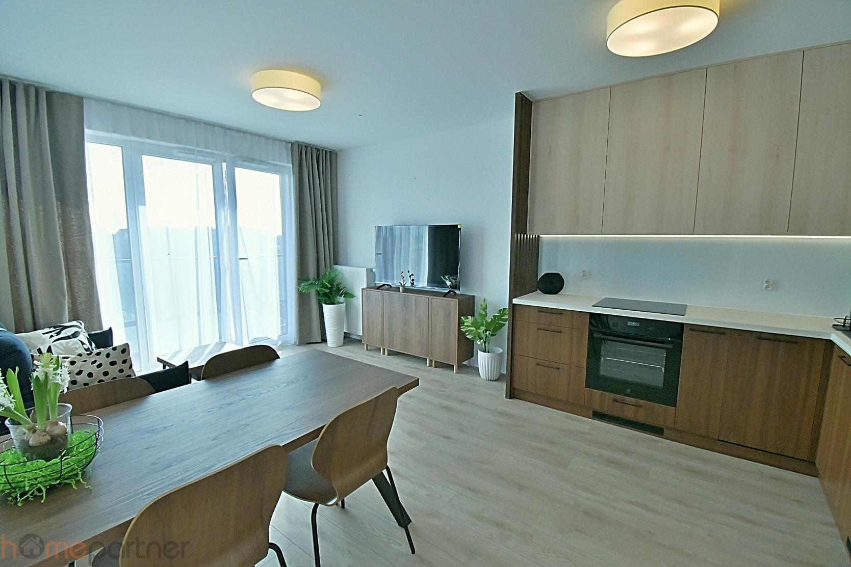 Oferuję do wynajęcia od zaraz nowe mieszkanie, pięknie urządzone. Salon z aneksem kuchennym i osobna sypialnia, łazienka i balkon. Dodatkowo miejsce postojowe za szlabanem.