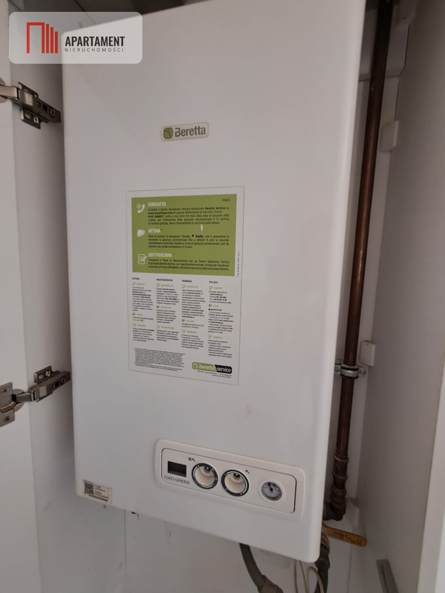Ogrzewanie i ciepła woda użytkowa pochodzą z nowoczesnego, kondensacyjnego kotła gazowego, co zapewnia niskie koszty eksploatacji i komfort przez cały rok.