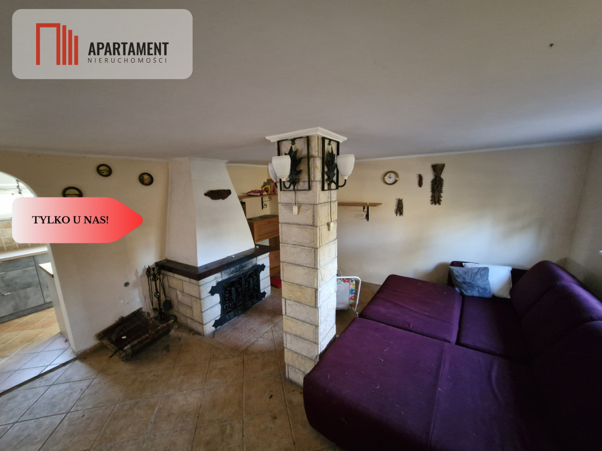 Przyziemie to salon z kominkiem, kuchnia, łazienka z prysznicem, przedpokój. Piętro: dwa pokoje.