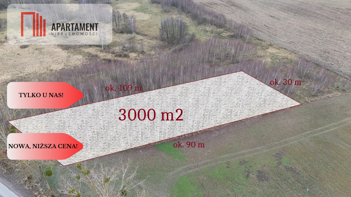 Dla nieruchomości prowadzona jest księga wieczysta - bez obciążeń. Działka jest obecnie porośnięta brzozami. Dotychczasowy właściciel dopuszcza możliwość ich usunięcia, co pozwoli przygotować teren do zagospodarowania.