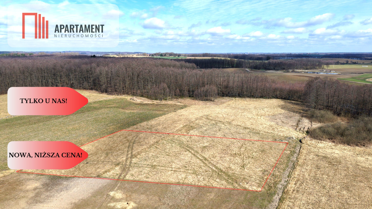 Sama działka otoczona jest lasem w odległości ok. 100 m oraz trzema jeziorami: