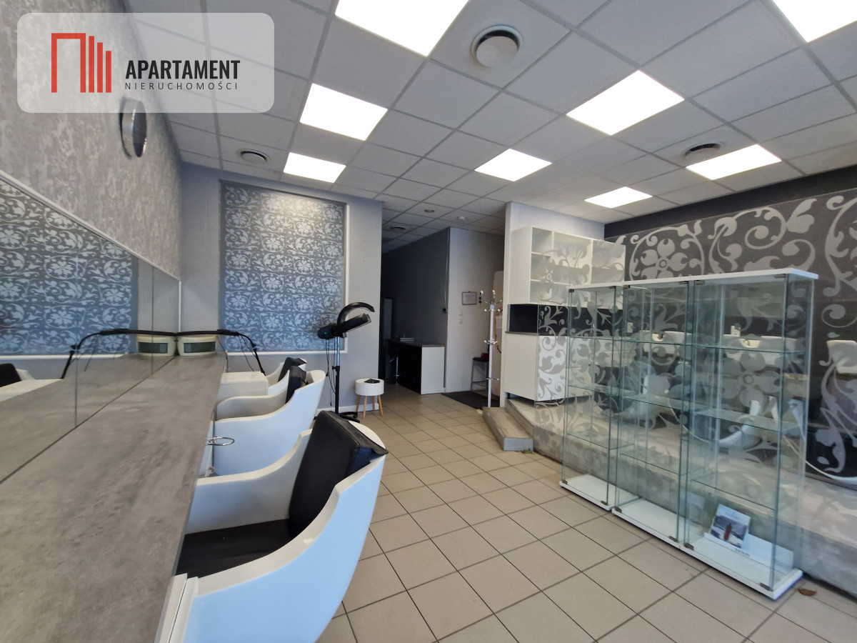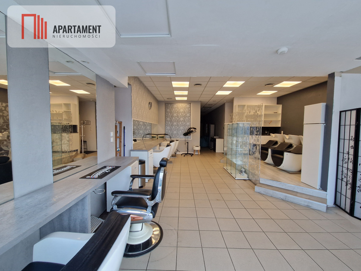 Opis lokalu: • Powierzchnia: 120 m²; • Układ: główna sala open space, idealna do aranżacji z sześcioma stanowiskami fryzjerskimi, miejscami do mycia włosów, stanowiskami do manicure oraz poczekalnią dla klientów i recepcją; • Dodatkowe pomieszczenia: zaplecze socjalne, mały magazyn, toaleta dla klientów i toaleta dla pracownika; • Gabinet kosmetyczny; • Duża witryna z oknami sięgającymi sufitu, co znacząco zwiększa widoczność i atrakcyjność lokalu.; • Duży, ogólnodostępny parking dla klientów;