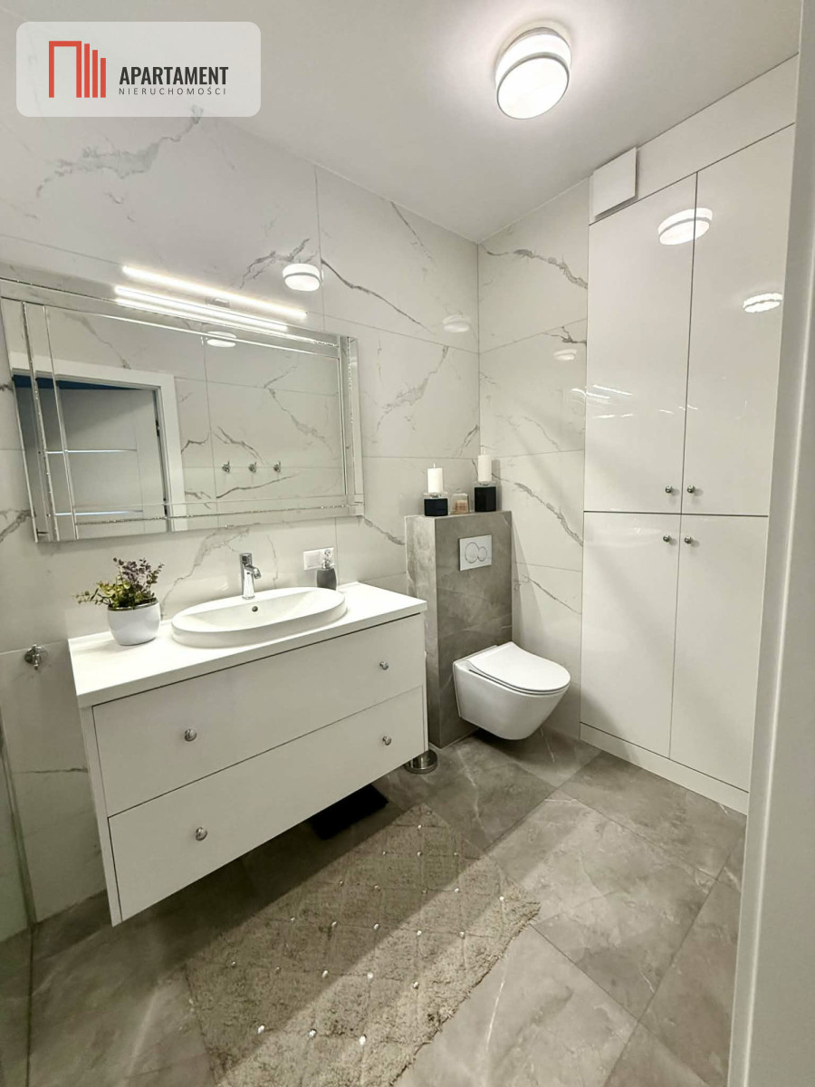 Oferujemy na sprzedaż elegancki, 3-pokojowy apartament o powierzchni użytkowej 75 m², zlokalizowany w Legnicy (woj. dolnośląskie). Nieruchomość znajduje się na 1. piętrze kameralnego, 3-piętrowego apartamentowca wyposażonego w windę. Mieszkanie zostało wykończone w wysokim standardzie, z dbałością o najmniejsze detale oraz spójną koncepcję aranżacyjną. We wnętrzu dominuje elegancka, ponadczasowa stylistyka, a zastosowane materiały wysokiej jakości podkreślają prestiżowy charakter apartamentu. Na powierzchnię mieszkania składają się przestronny salon, kuchnia, dwie sypialnie, łazienka z WC oraz przedpokój. Starannie zaprojektowany, funkcjonalny układ pomieszczeń gwarantuje komfort codziennego życia, a przemyślane rozwiązania podnoszą wygodę użytkowania. Apartament łączy estetykę z praktycznością, tworząc harmonijną i reprezentacyjną przestrzeń do życia. Dodatkowym atutem nieruchomości są dwa balkony - jeden z wyjściem z salonu, drugi z sypialni. Do mieszkania przynależy również komórka lokatorska o powierzchni 3,22 m² oraz miejsce postojowe na ogrodzonym terenie. Części wspólne budynku utrzymane są w wysokim standardzie - klatka schodowa jest przestronna, czysta i estetycznie wykończona, co podkreśla prestiż inwestycji. Wejście do budynku zabezpieczone jest domofonem, zapewniając mieszkańcom komfort i bezpieczeństwo. Czynsz administracyjny wynosi 550 zł i obejmuje fundusz remontowy, ogrzewanie CO oraz wynagrodzenie zarządcy. Dodatkowo płatne są opłaty za wodę oraz wywóz śmieci według wskazań liczników. Apartament stanowi idealną propozycję dla osób poszukujących nieruchomości o podwyższonym standardzie, która łączy nowoczesność, elegancję i funkcjonalność w jednej przestrzeni.